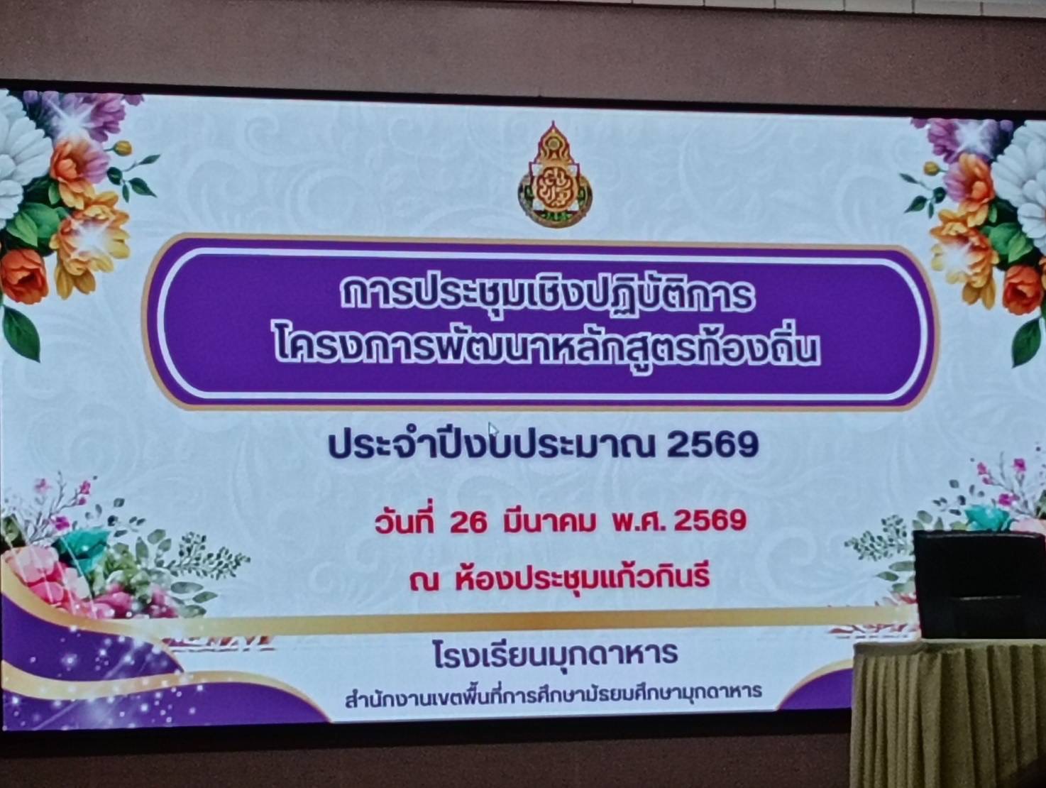 วันที่ ๒๖ มีนาคม พ.ศ. ๒๕๖๙ นายบุญชอบ อุสาย ผู้อำนวยการโรงเรียนคำชะอีวิทยาคาร พร้อมด้วย ครูสุมาลัย ผิวขำ หัวหน้ากลุ่มบริหารวิชาการ และ ครูดวงรักษ์ บรรจง หัวหน้างานวัดและประเมินผล เข้าร่วมประชุมเชิงปฏิบัติการโครงการพัฒนาหลักสูตรท้องถิ่น ประจำปีงบประมาณ ๒๕๖๙ ณ ห้องประชุมแก้วกินรี โรงเรียนมุกดาหาร