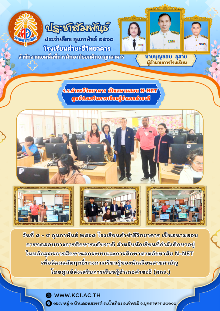 การขับเคลื่อนตามนโยบาย สพฐ. ร.ร.คำชะอีวิทยาคาร เป็นสนามสอบ N-NET สกร.อำเภอคำชะอี ในวันที่ ๘ – ๙ กุมภาพันธ์ February 11, 2025February 11, 2025 admin 0 Comments ยอดผู้อ่าน 397