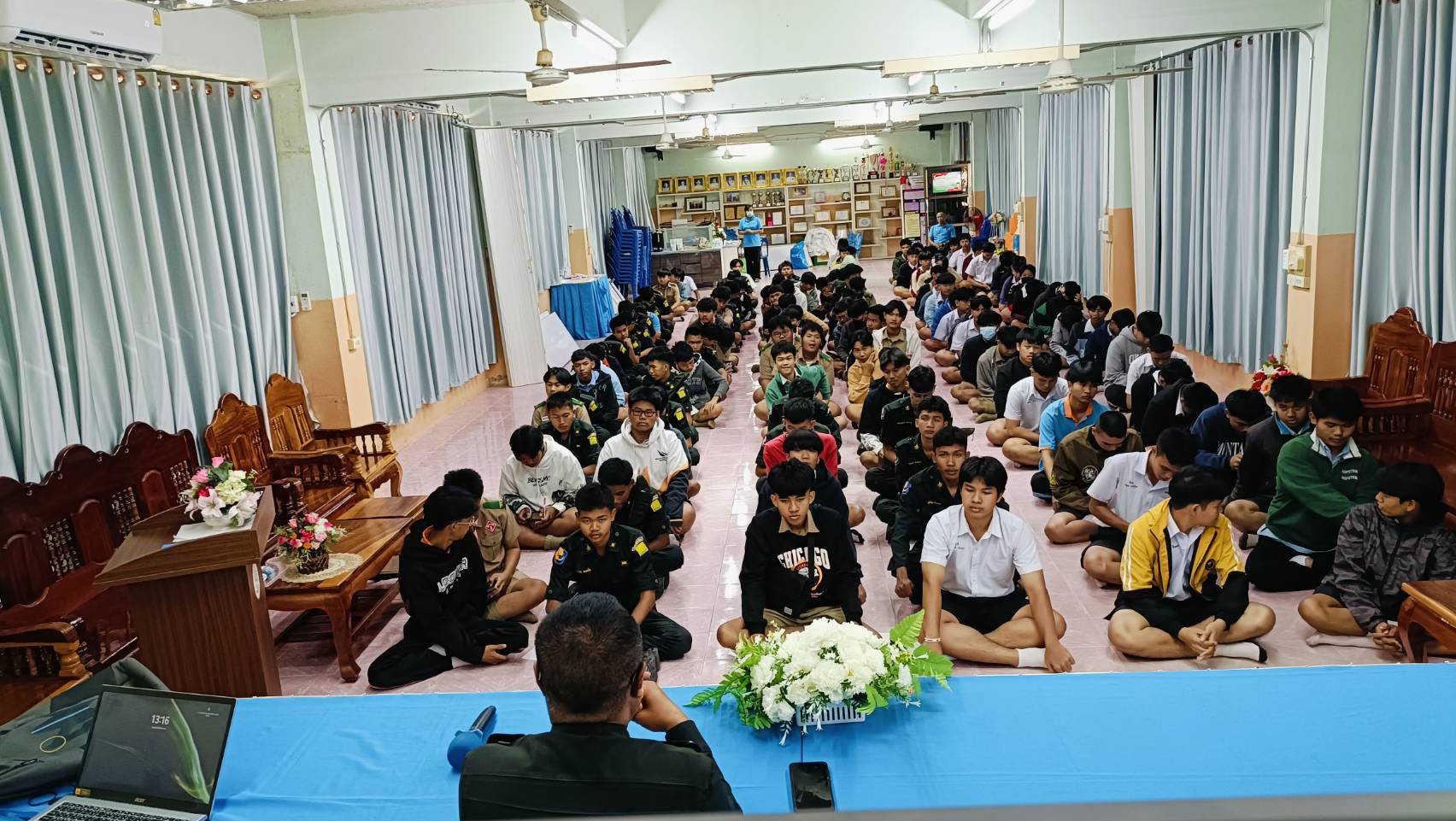 นักเรียนชาย ม.ปลาย เข้ารับฟังการแนะแนว จากสัสดี อ.คำชะอี และ อ.เมืองมุกดาหาร เกี่ยวกับการเข้ารับราชการทหาร