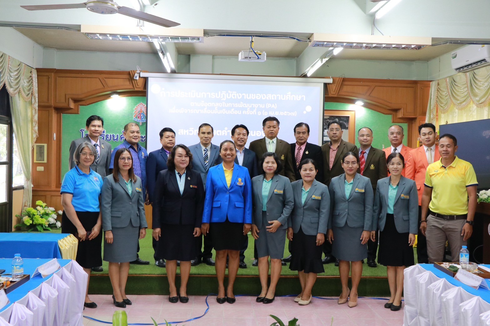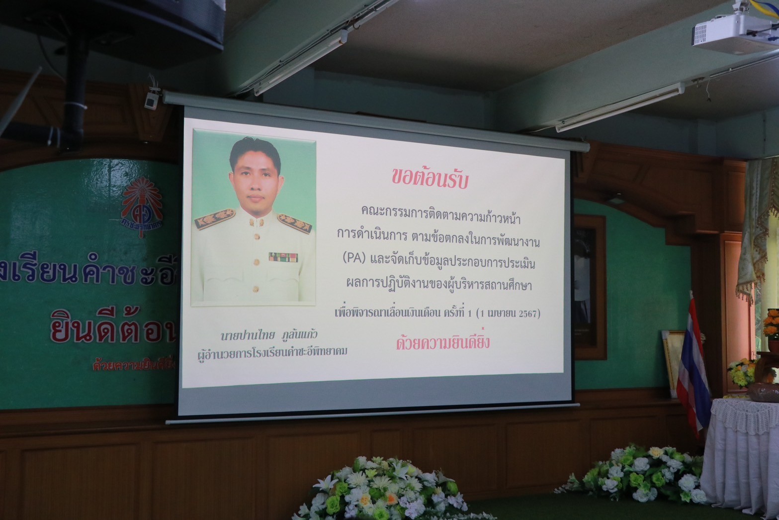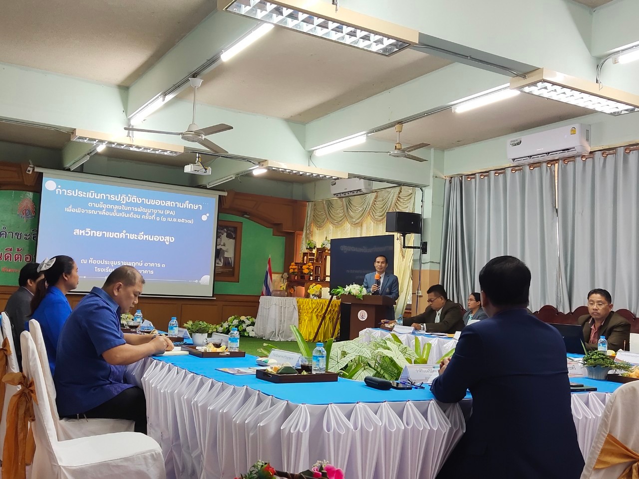 การติดตามความก้าวหน้าการดำเนินงานตามข้อตกลงในการพัฒนางาน (PA) และจัดเก็บข้อมูลประกอบการปฏิบัติงานของผู้บริหารสถานศึกษา สหวิทยาเขต คำชะอีหนองสูง เพื่อพิจารณาเลื่อนเงินเดือนครั้งที่ ๑ (๑ ตุลาคม ๒๕๖๖ ถึง ๓๑ มีนาคม ๒๕๖๗) โดย ดร.ฐิตินันท์ นันทะศรี ผอ.สพม.มุกดาหาร พร้อมคณะ ในวันที่ ๓ เมษายน ๒๕๖๗ ณ ห้องประชุม อาคาร ๓ โรงเรียนคำชะอีวิทยาคาร