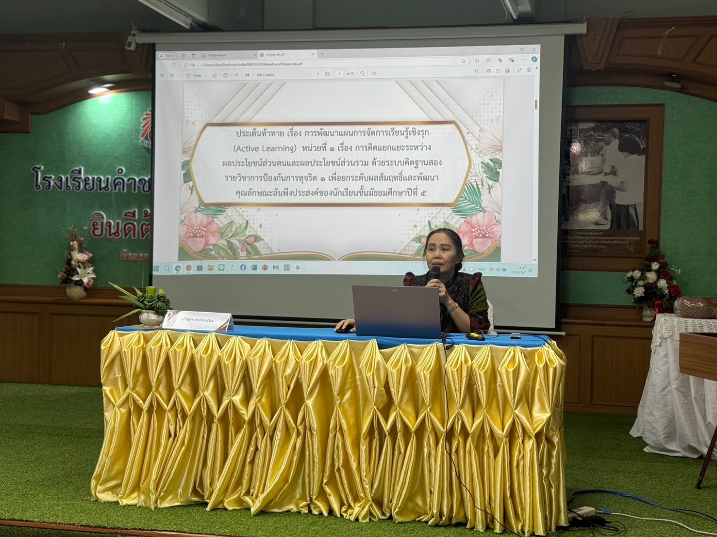 การประเมินผลการพัฒนางานตามข้อตกลง (Performance Agreement: PA) รอบการประเมิน วันที่ ๑ ตุลาคม ๒๕๖๖ ถึงวันที่ ๓๐ กันยายน ๒๕๖๗ ในวันที่ ๑๙ กันยายน ๒๕๖๗ ณ ห้องประชุมอาคาร ๓ โรงเรียนคำชะอีวิทยาคาร