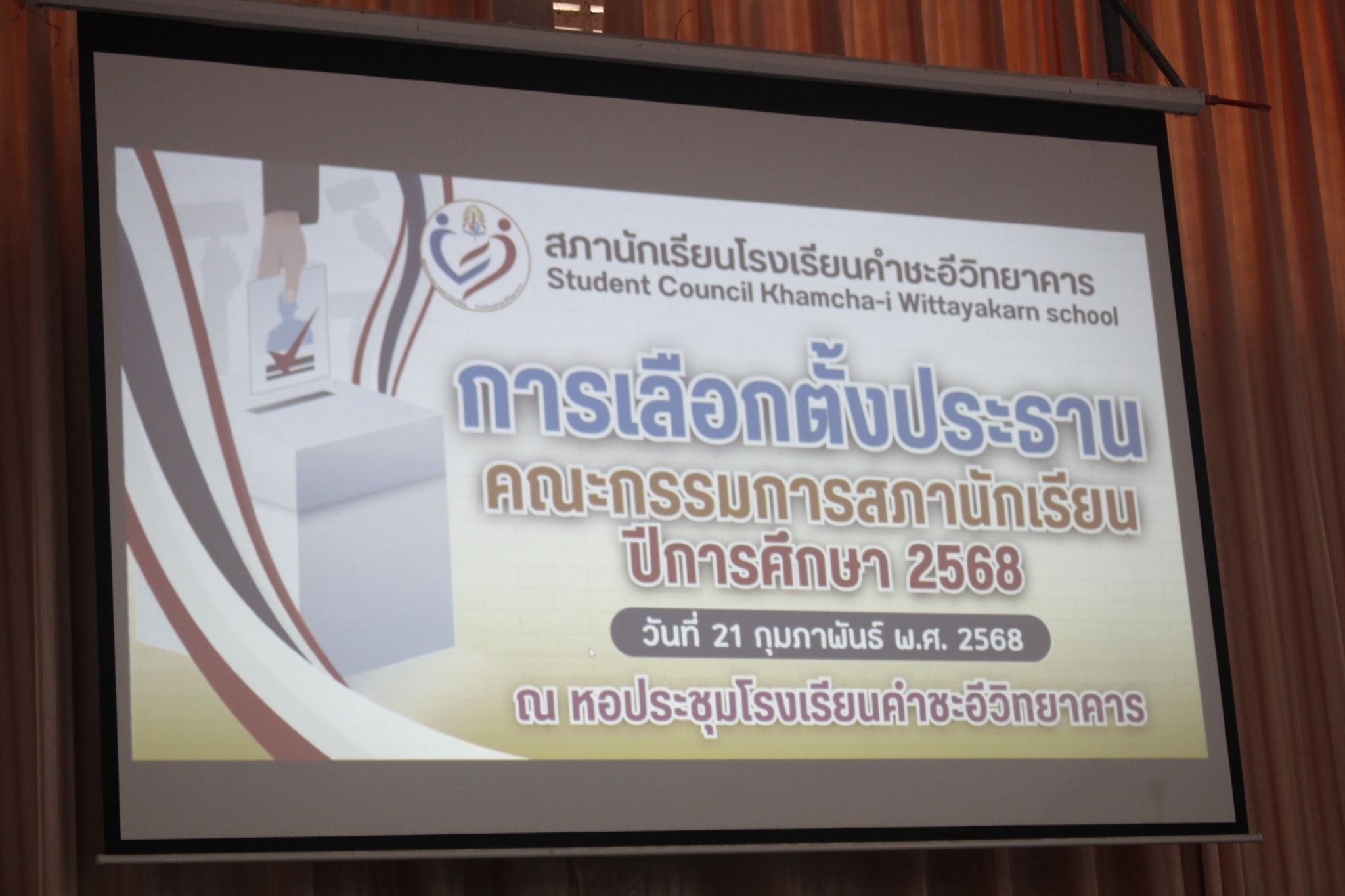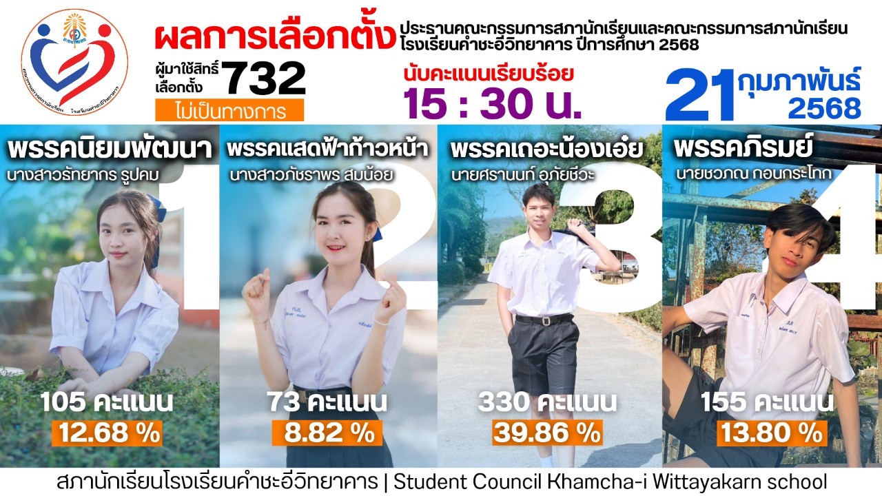 ในวันศุกรที่ ๒๑ กุมภาพันธ์ ๒๕๖๘ กลุ่มบริหารงานกิจการนักเรียน ได้จัดกิจกรรม การเลือกตั้งประธาน และคณะกรรมการสภานักเรียน โรงเรียนคำชะอีวิทยาคาร ขึ้น โดยผู้ที่ได้คะแนนสูงสุด คือ นายศรานนท์ อุภัยชีวะ พรรคเถอะน้อยเอ๋ย จึงได้รับแต่งตั้งให้ดำรงตำแหน่ง ประธานสภา พร้อมทีมคณะกรรมการสภานักเรียน ประจำปีการศึกษา ๒๕๖๘