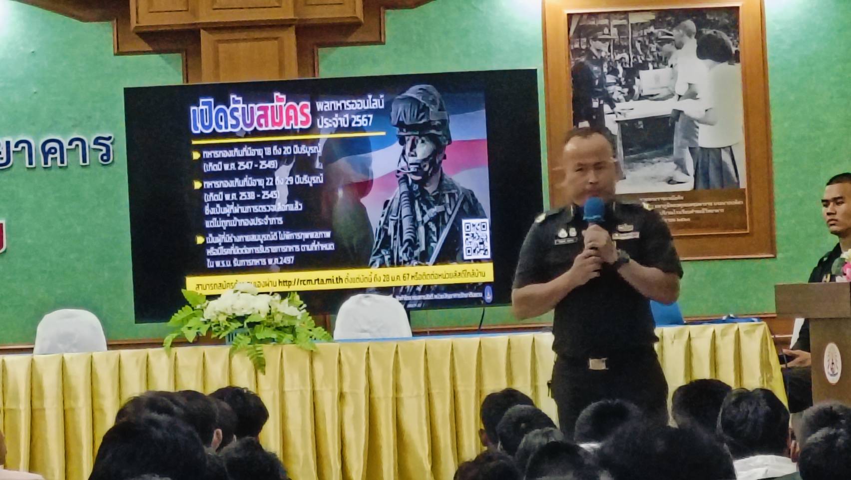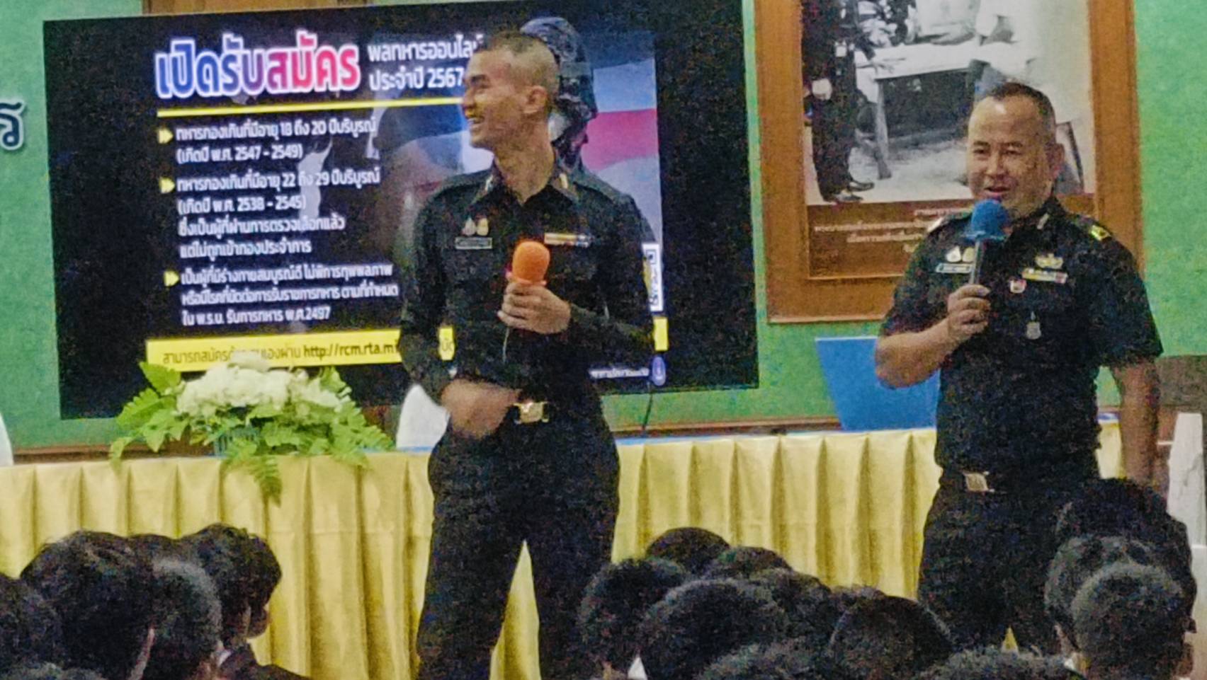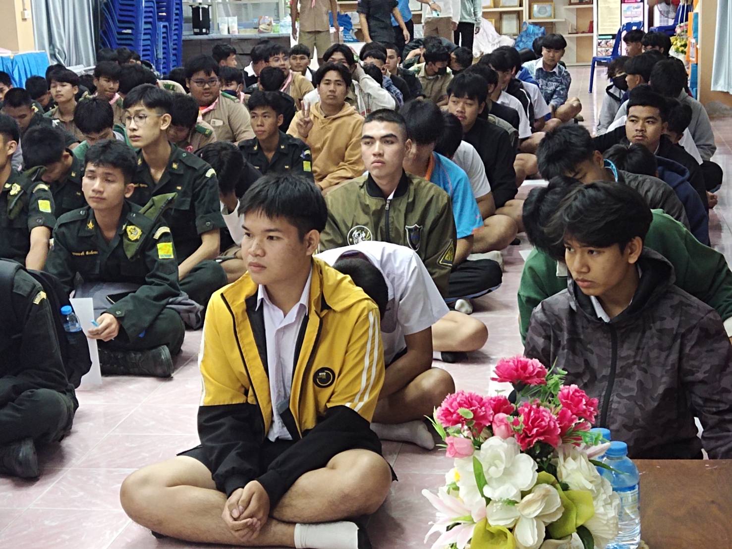 นักเรียนชาย ม.ปลาย เข้ารับฟังการแนะแนว จากสัสดี อ.คำชะอี และ อ.เมืองมุกดาหาร เกี่ยวกับการเข้ารับราชการทหาร