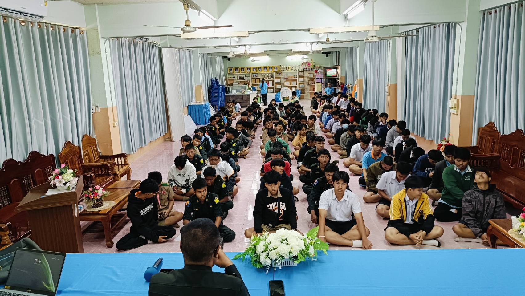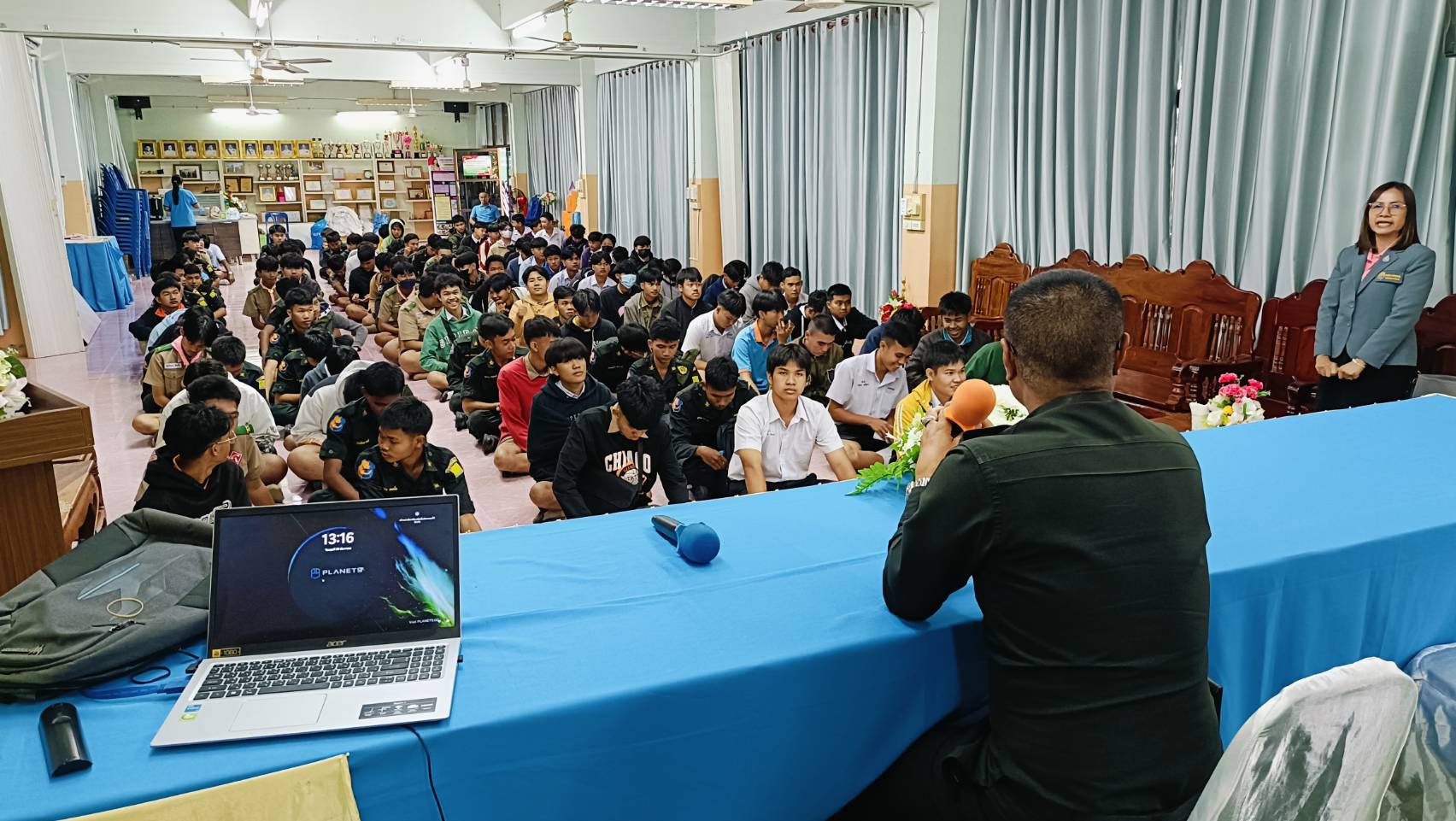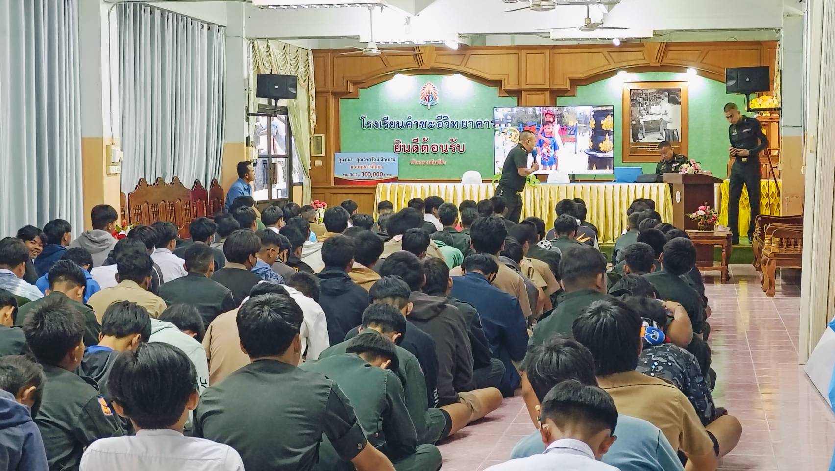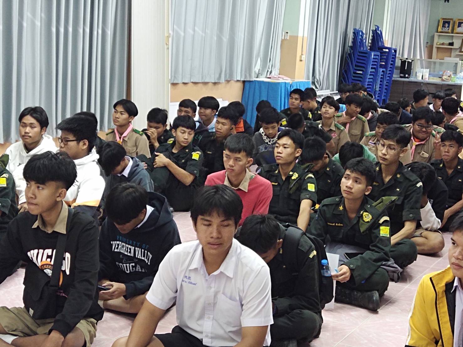 นักเรียนชาย ม.ปลาย เข้ารับฟังการแนะแนว จากสัสดี อ.คำชะอี และ อ.เมืองมุกดาหาร เกี่ยวกับการเข้ารับราชการทหาร