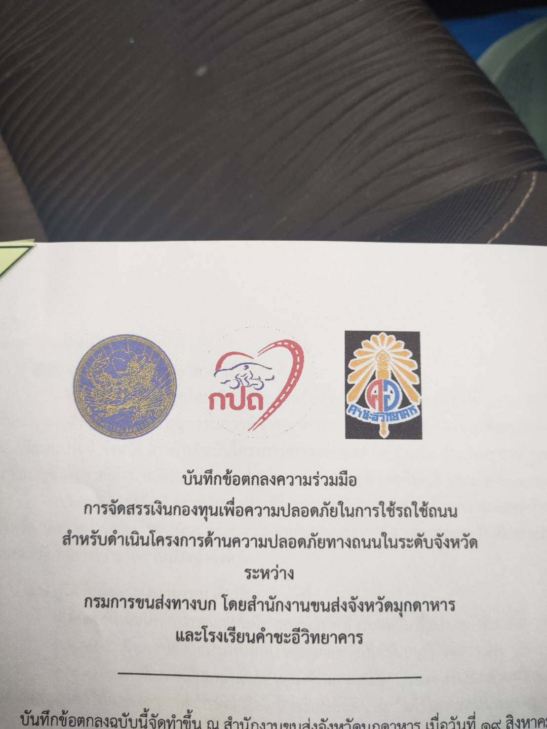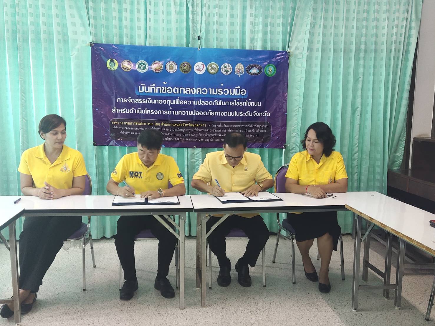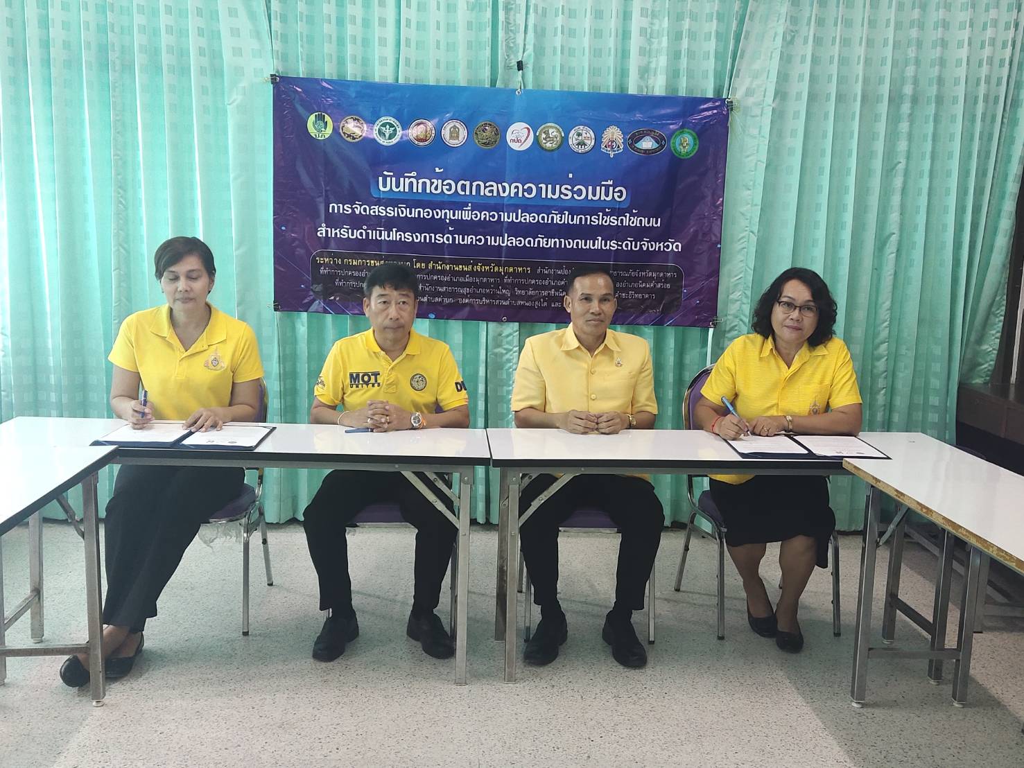 นายบุญชอบ อุสาย ผู้อำนวยการ และ รองอุลิยา ร่วมลงนามบันทึกข้อตกลงความร่วมมือกับกรมการขนส่งทางบก มุกดาหาร