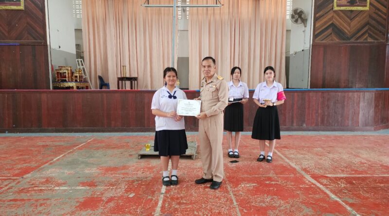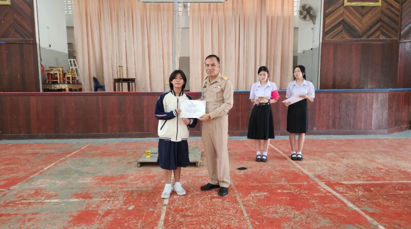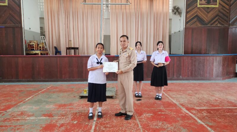 นายบุญชอบ อุสาย ผู้อำนวยการโรงเรียน มอบเกียรติบัตร ‘ยอดนักออม’ ให้กับนักเรียน
