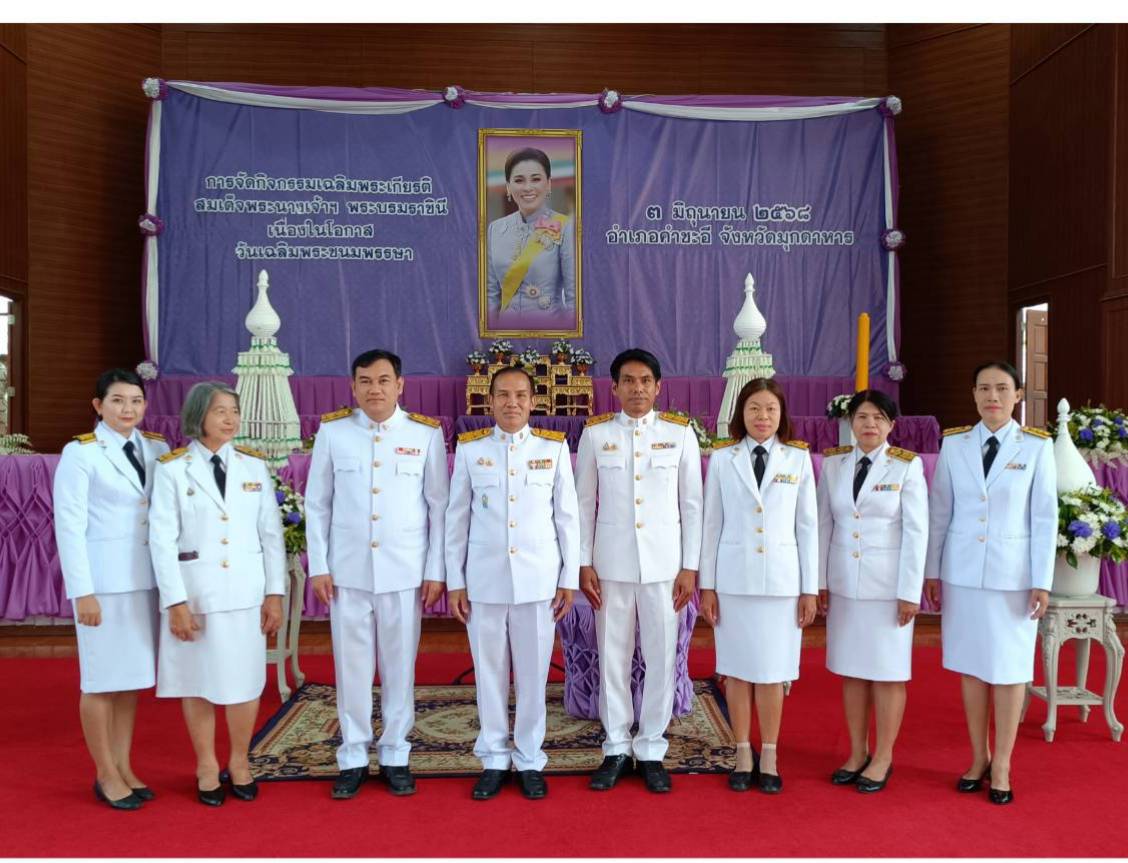 วันที่ ๓ มิถุนายน ๒๕๖๘ นายบุญชอบ อุสาย ผู้อำนวยการโรงเรียนคำชะอีวิทยาคาร และคณะครู บุคลากร ร่วมกิจกรรมเฉลิมพระเกียรติสมเด็จพระนางเจ้าฯ พระบรมราชินี เนื่องในโอกาสวันเฉลิมพระชนมพรรษา ๓ มิถุนายน ๒๕๖๘ ณ ศาลาประชาคม อำเภอคำชะอี