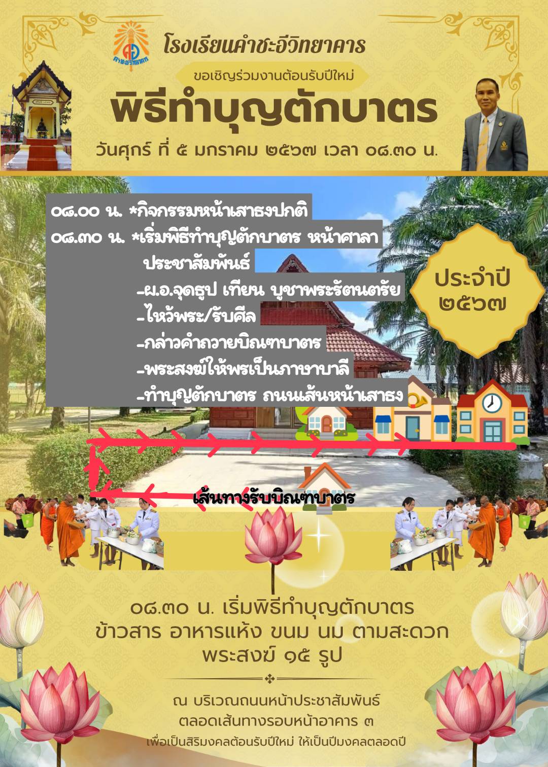 พิธีทำบุญตักบาตร ต้อนรับปีใหม่ ๒๕๖๗