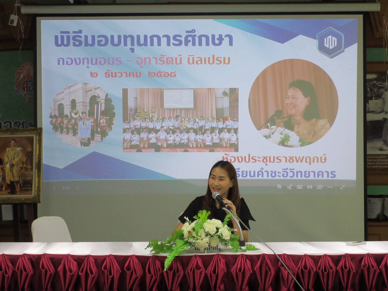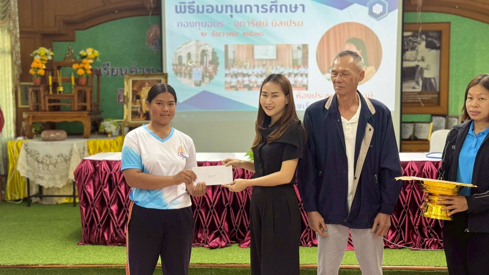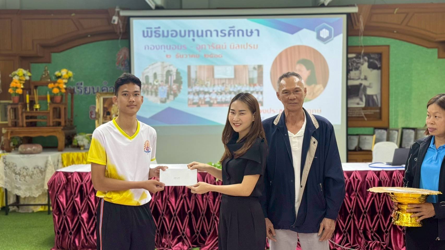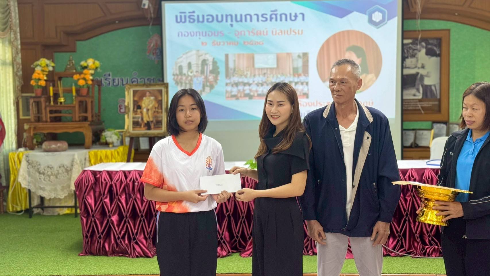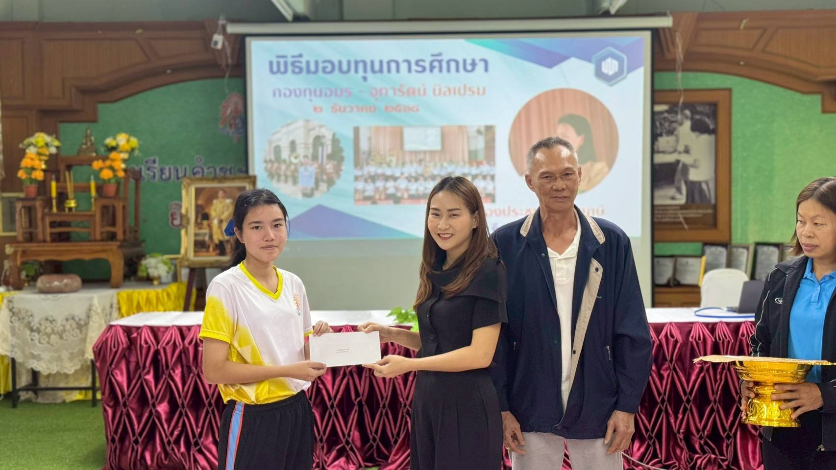 - ภายในพิธีได้รับเกียรติจากผู้บริหาร ครู บุคลากรทางการศึกษา รวมถึงผู้แทนกองทุนร่วมเป็นเกียรติในพิธี โดยได้มอบทุนการศึกษาให้แก่นักเรียนที่ได้รับการคัดเลือกตามหลักเกณฑ์ของกองทุน เพื่อเป็นกำลังใจในการศึกษาเล่าเรียนและส่งเสริมให้นักเรียนมุ่งมั่นพัฒนาตนเองอย่างต่อเนื่อง
