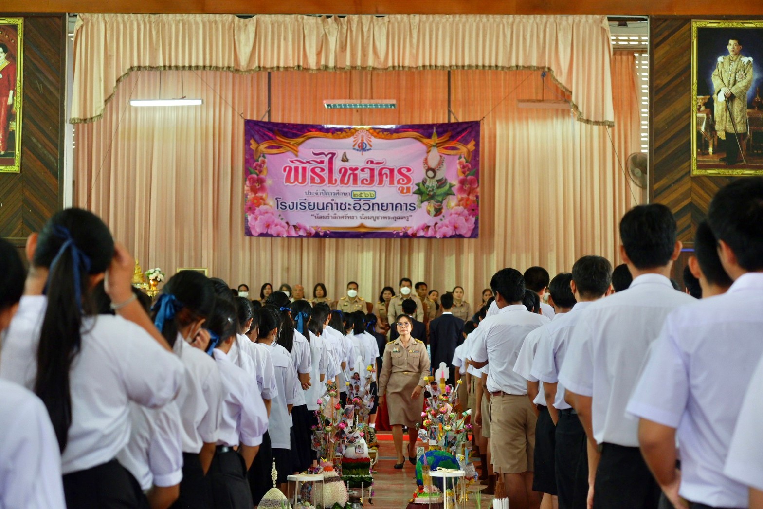 พิธีไหว้ครู ประจำปี ๒๕๖๖ ของนักเรียนโรงเรียนคำชะอีวิทยาคาร เพื่อปลูกฝังความกตัญญูต่อครูผู้ให้ความรู้ ให้ศิษย์แสดงความเคารพ ยอมรับนับถือครูบาอาจารย์อย่างจริงใจ