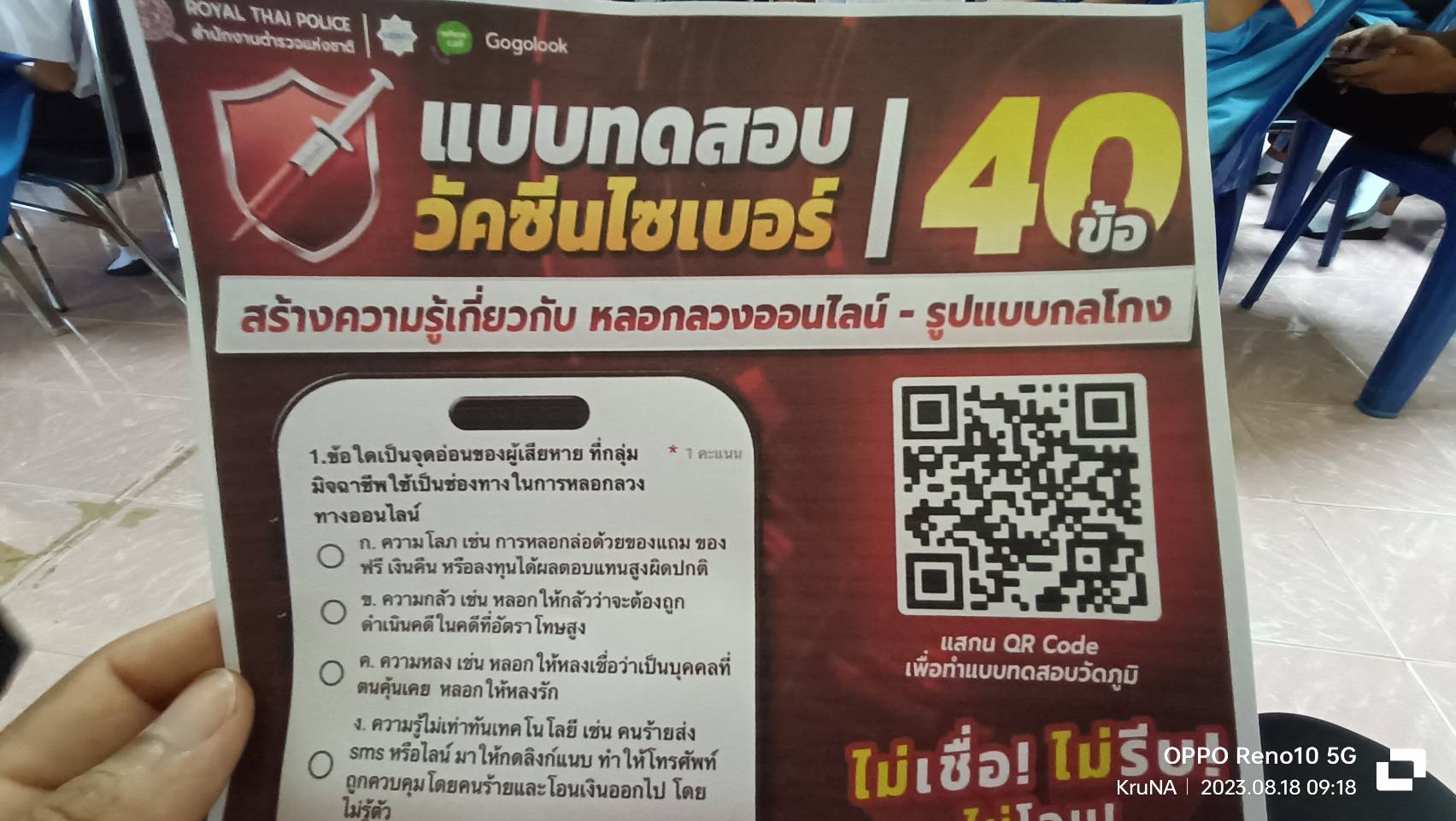 คณะทำงานสร้างเสริมภูมิคุ้มกันภัยอาชญากรรมทางเทคโนโลยี โดยตำรวจ สภ.คำชะอี ให้ความรู้ เรื่อง การสร้างเสริมภูมิคุ้มกันภัยอาชญากรรมทางเทคโนโลยี (Cyber Vaccinated )