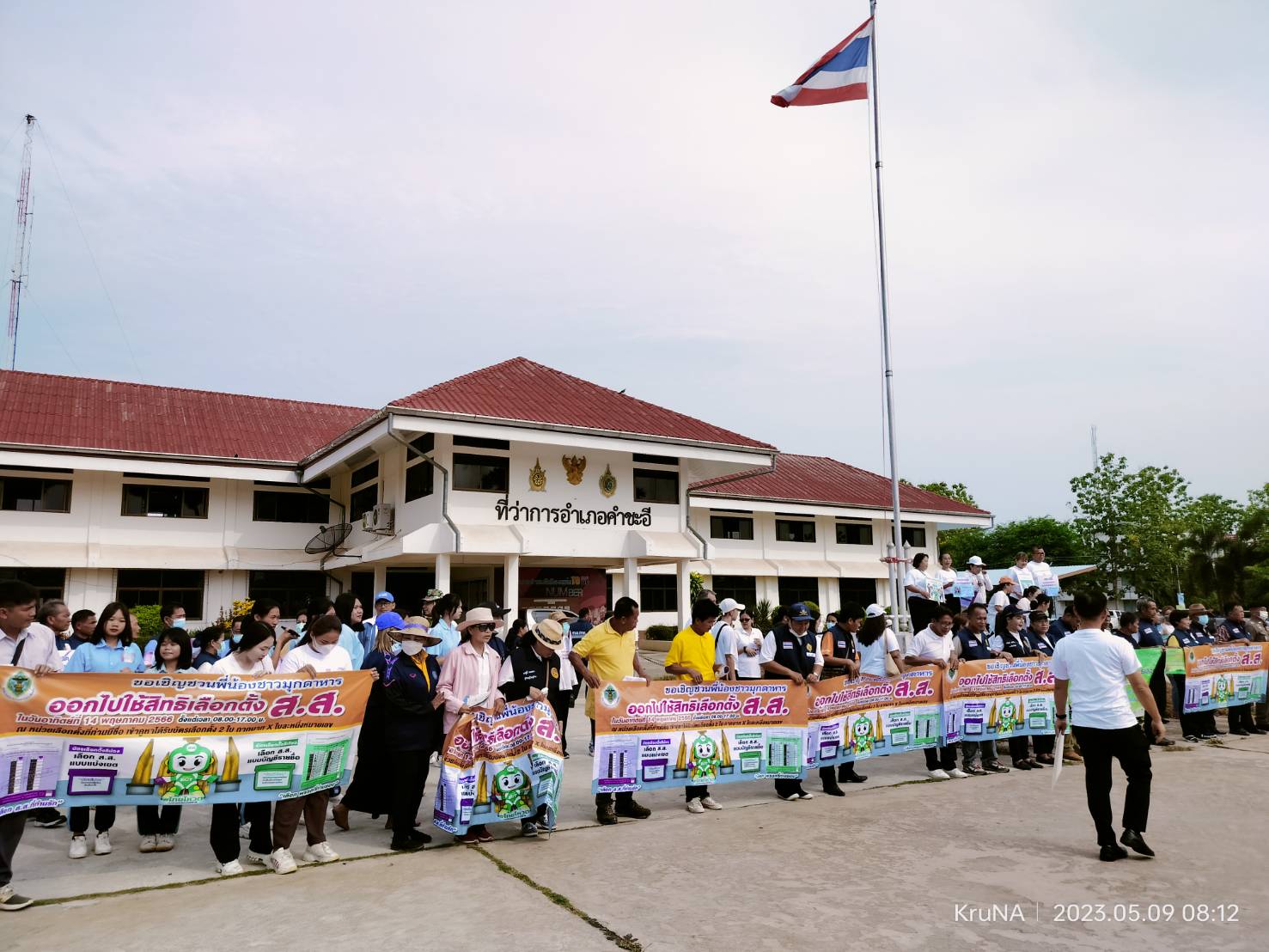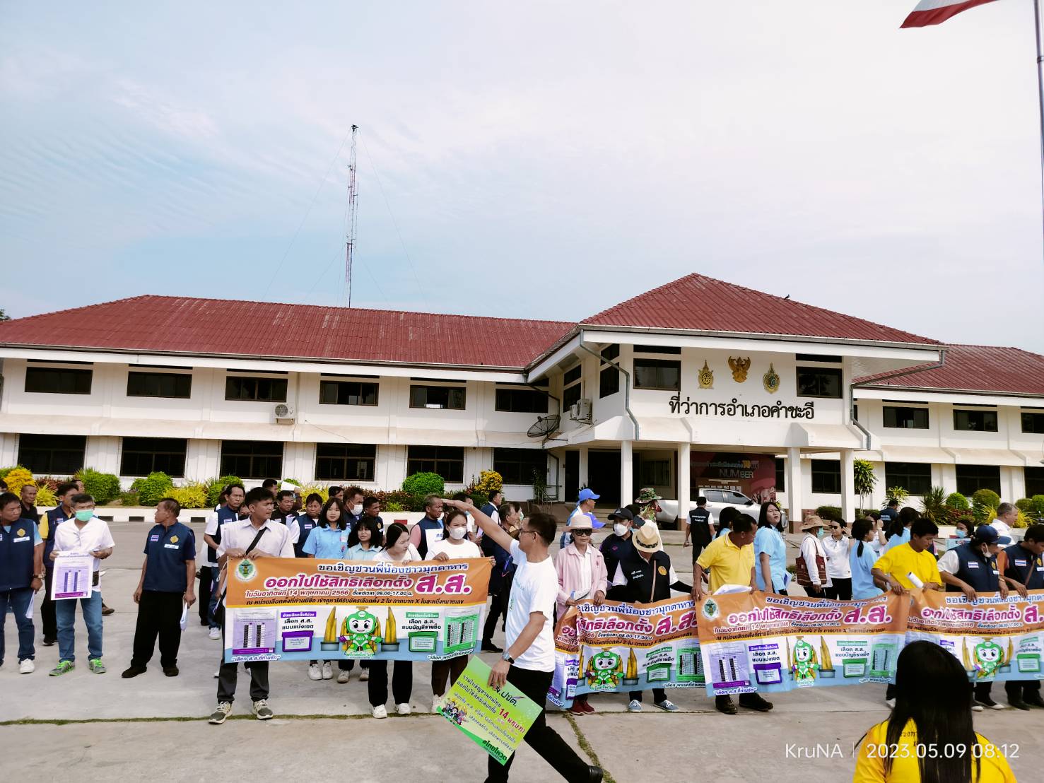 โรงเรียนคำชะอีวิทยาคาร ร่วมเดินรณรงค์ให้ประชาชนไปใช้สิทธิ์เลือกตั้ง สมาชิกสภาผู้แทนราษฎร ส.ส. พ.ศ. ๒๕๖๖ ในวันอาทิตย์ที่ ๑๔ พฤษภาคม ๒๕๖๖