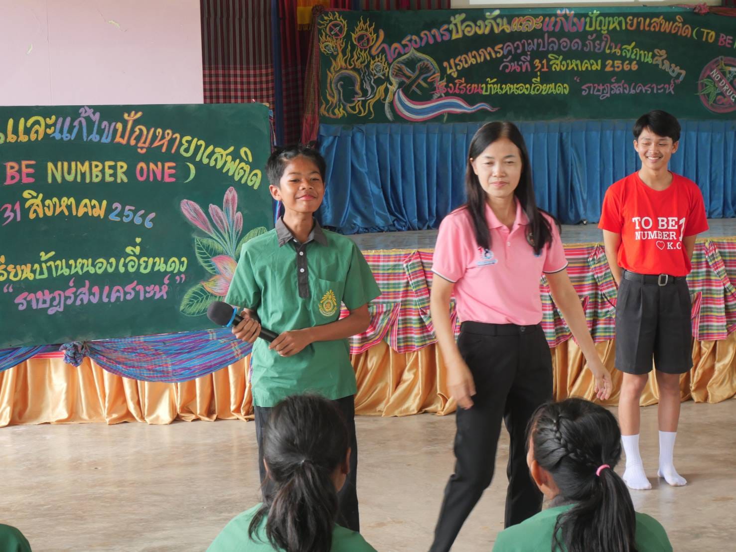ในวันที่ ๓๑ สิงหาคม ชมรม TO BE NUMBER ONE โรงเรียนคำชะอีวิทยาคาร เป็นวิทยากรอบรมโครงการรณรงค์ป้องกันและแก้ไขปัญหายาเสพติด TO BE NUMBER ONE   บูรณาการความปลอดภัยในสถานศึกษา ให้กับโรงเรียนบ้านหนองเอี่ยนดง “ราษฎร์สงเคราะห์” ปี ๒๕๖๖