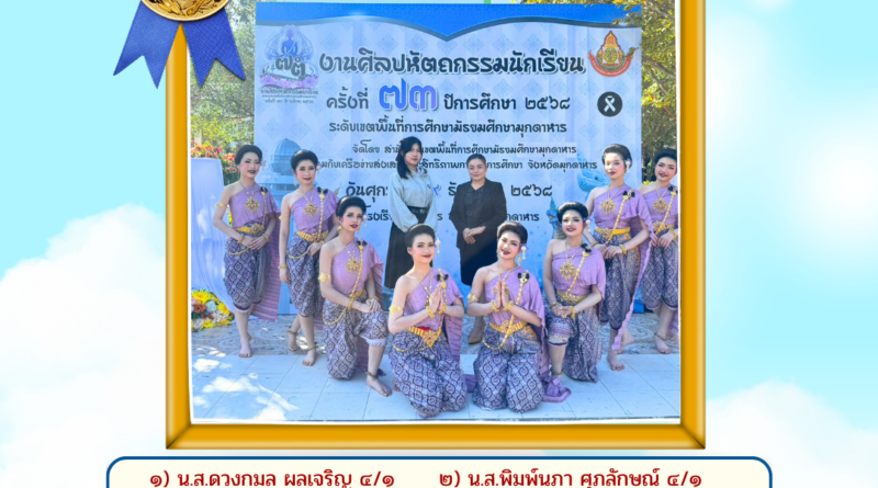 Read moreเด็กและเยาวชนดีเด่นชมรม TO BENUMBER ONE รับเกียรติบัตรเนื่องในงาน วันเยาวชนแห่งชาติจังหวัดมุกดาหาร ประจำปี ๒๕๖๘ “มหกรรมการพัฒนาเด็กและเยาวชน ๔ ทศวรรษ ร่วมแรงแข็งขันพัฒนาใฝ่หาสันติ” ในวันที่ ๑๖ กันยายน ๒๕๖๘ ณ โรงเรียนดอนตาลวิทยา