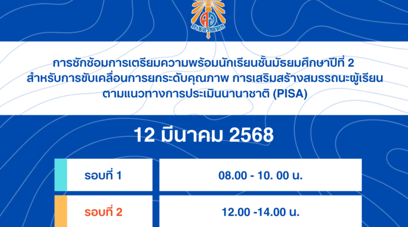 การซักซ้อมการเตรียมความพร้อมนักเรียนชั้นมัธยมศึกษาปีที่ ๒ สำหรับการขับเคลื่อนการยกระดับคุณภาพตามแนวทาง PISA