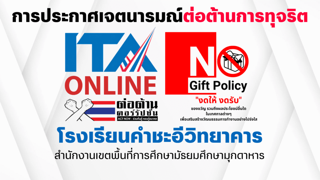 ITA68 ประกาศเจตนารมณ์และการสร้างวัฒนธรรมตามนโยบาย No Gift Policy จากการปฏิบัติหน้าที่ July 9, 2025July 9, 2025 admin 0 Comments ยอดผู้อ่าน 273 O15-ประกาศNoGiftPolicyฉบับภาษาไทยDownload O15-ประกาศNoGiftPolicyฉบับภาษาอังกฤษDownload O15-บันทึกข้อความการไม่รับของขวัญคำชะอีวิทยาคารDownload O15-แบบรายงานการรับของขวัญและของกำนัลตามนโยบาย-No-Gift-PolicyDownload