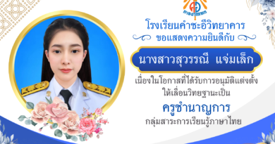เผยแพร่ผลงานครู ขอแสดงความยินดีกับครูชญานี (ครูสังคม) และ ครูณัฐวัฒน์ (ครูคอมพิวเตอร์) ที่ได้รับอนุมัติเลื่อนวิทยฐานะ March 27, 2025March 27, 2025 admin 0 Comments ยอดผู้อ่าน 492