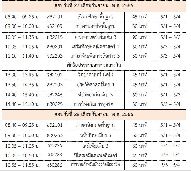 ข่าวประชาสัมพันธ์/ประกาศ ตารางสอบปลายภาคเรียนที่ ๑/๒๕๖๖ September 26, 2023September 26, 2023 admin 0 Comments ยอดผู้อ่าน 371 ตารางสอบปลายภาคเรียนที่ ๑/๒๕๖๖ ในระหว่างวันที่ ๒๖ – ๒๘ กันยายน ๒๕๖๖