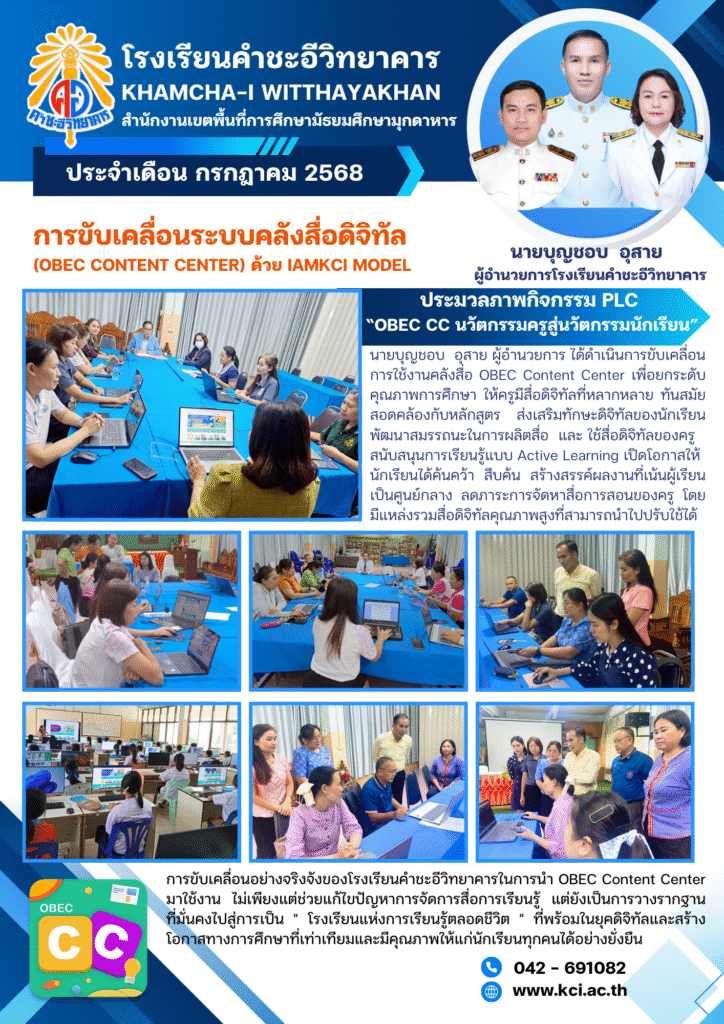 นายบุญชอบ อุสาย ผู้อำนวยการ ได้ดำเนินการขับเคลื่อนการใช้งานคลังสื่อ OBEC Content Center เพื่อยกระดับคุณภาพการศึกษา ให้ครูมีสื่อดิจิทัลที่หลากหลาย ทันสมัย สอดคล้องกับหลักสูตร ส่งเสริมทักษะดิจิทัลของนักเรียนพัฒนาสมรรถนะในการผลิตสื่อ และ ใช้สื่อดิจิทัลของครูสนับสนุนการเรียนรู้แบบ Active Learning เปิดโอกาสให้นักเรียนได้ค้นคว้า สืบค้น สร้างสรรค์ผลงานที่เน้นผู้เรียนเป็นศูนย์กลาง ลดภาระการจัดหาสื่อการสอนของครู โดยมีแหล่งรวมสื่อดิจิทัลคุณภาพสูงที่สามารถนำไปปรับใช้ได้