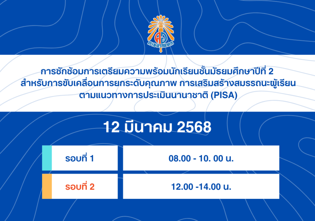 การซักซ้อมการเตรียมความพร้อมนักเรียนชั้นมัธยมศึกษาปีที่ ๒ สำหรับการขับเคลื่อนการยกระดับคุณภาพตามแนวทาง PISA