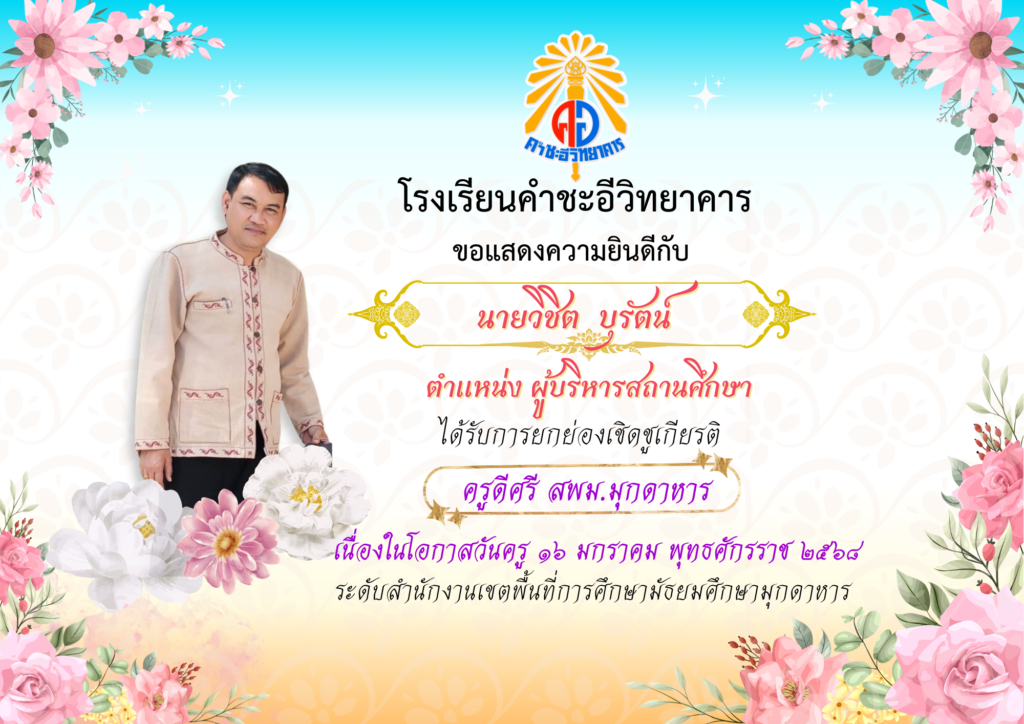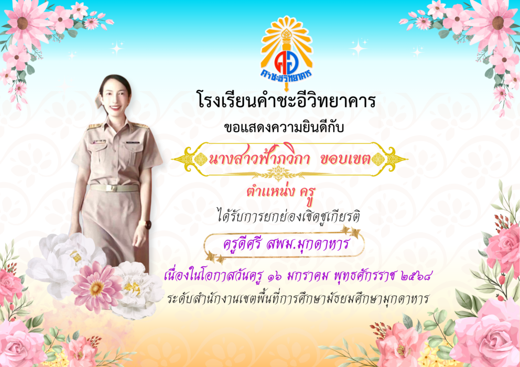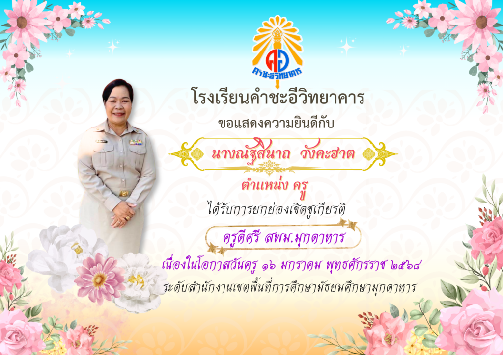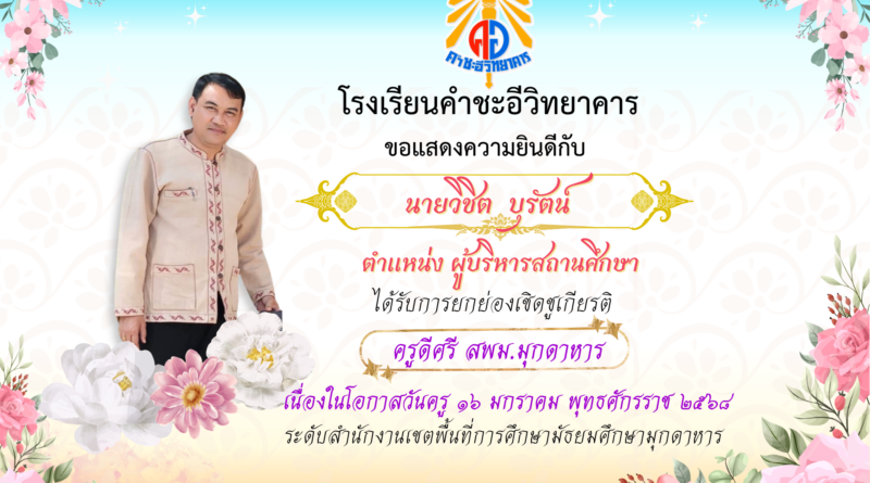 ข่าวประชาสัมพันธ์/ประกาศ ขอแสดงความยินดีกับ รอง ผอ.วิชิต บุรัตน์ , ครูณัฐสินาถ วังคะฮาต และ ครูฟ้าภวิกา ขอบเขต ที่ได้รับการยกย่องเชิดชูเกียรติ รางวัล “ครูดีศรี สพม.มุกดาหาร “ January 13, 2025January 14, 2025 admin 0 Comments ยอดผู้อ่าน 630