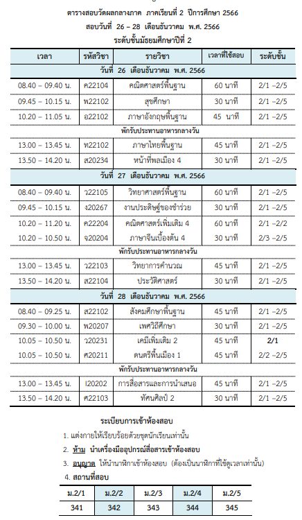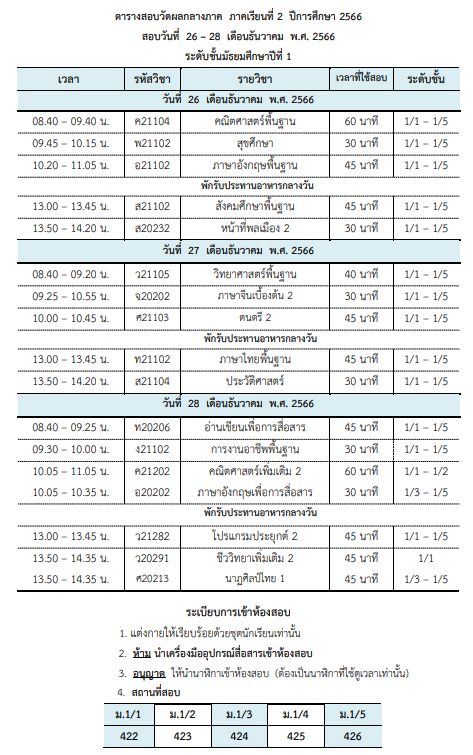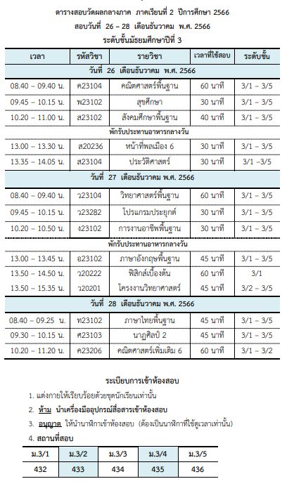 ข่าวประชาสัมพันธ์/ประกาศ ตารางสอบวัดผลกลางภาคเรียนที่ 2/2566 December 24, 2023December 24, 2023 admin 0 Comments ยอดผู้อ่าน 1,006