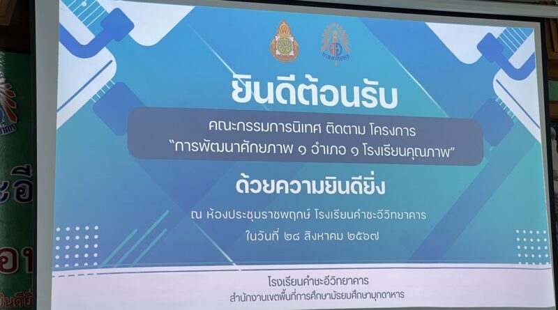ผู้บริหาร คณะครูและบุคลากรทางการศึกษา โรงเรียนคำชะอีวิทยาคาร ร่วมต้อนรับคณะกรรมการจาก สพม.มุกดาหาร นำโดย สิบตำรวจโทสุชาติ สุวรรณเลิศ รอง ผอ.สพม.มุกดาหาร และ คณะศึกษานิเทศก์ ที่มานิเทศ กำกับ ติดตาม การดำเนินงานตามโครงการ ๑ อำเภอ ๑ โรงเรียนคุณภาพ ในวันพุธ ที่ ๒๘ สิงหาคม ๒๕๖๗