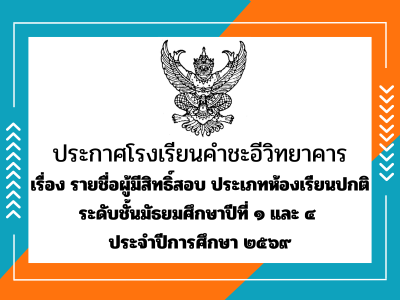 ข่าวประชาสัมพันธ์/ประกาศ รายชื่อผู้มีสิทธิ์สอบจัดชั้นเรียนชั้นมัธยมศึกษาปีที่ ๑ และ ๔ ห้องเรียนปกติ ปีการศึกษา ๒๕๖๙ March 27, 2026March 27, 2026 admin 0 Comments ยอดผู้อ่าน 37