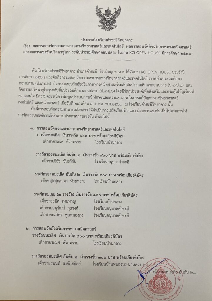 ข่าวประชาสัมพันธ์/ประกาศ ผลการสอบวัดความรู้ทางวิทยาศาสตร์และเทคโนโลยี ผลการสอบวัดอัจฉริยภาพทางคณิตศาสตร์ และผลการแข่งขันปริศนาซูโดกุ ระดับ ป.4-6 กิจกรรม KCI OPEN HOUSE January 28, 2026January 28, 2026 admin 0 Comments ยอดผู้อ่าน 88