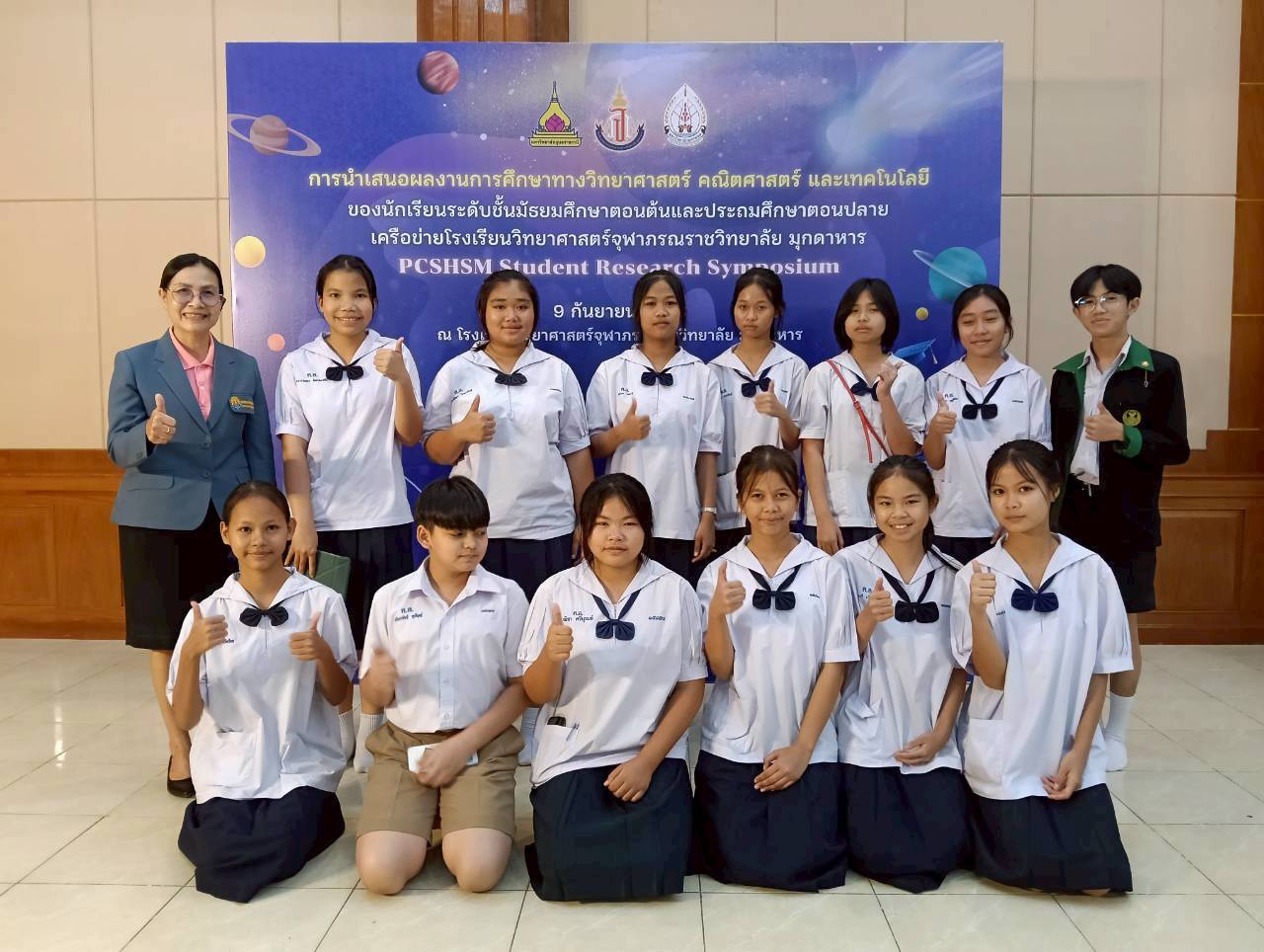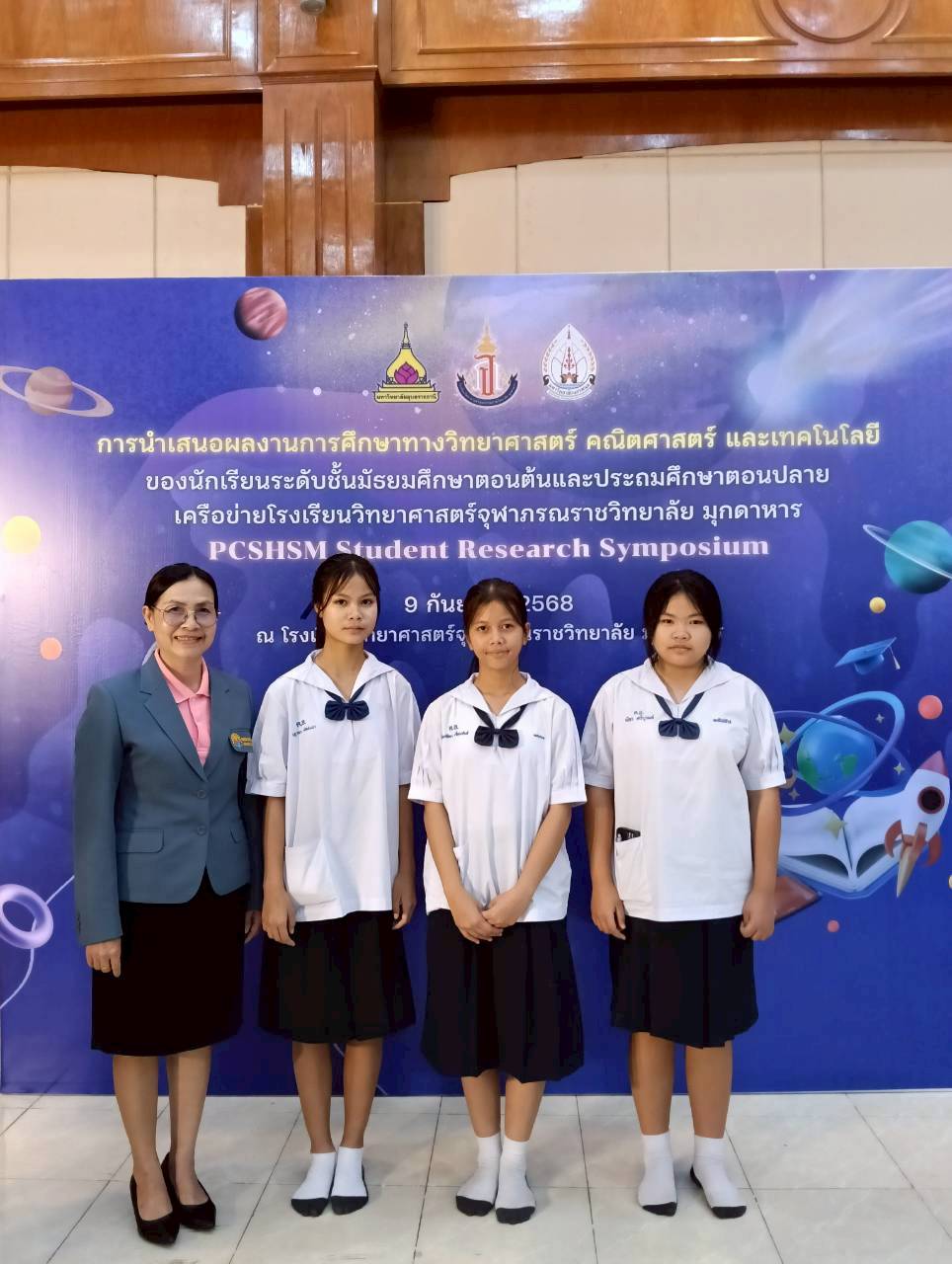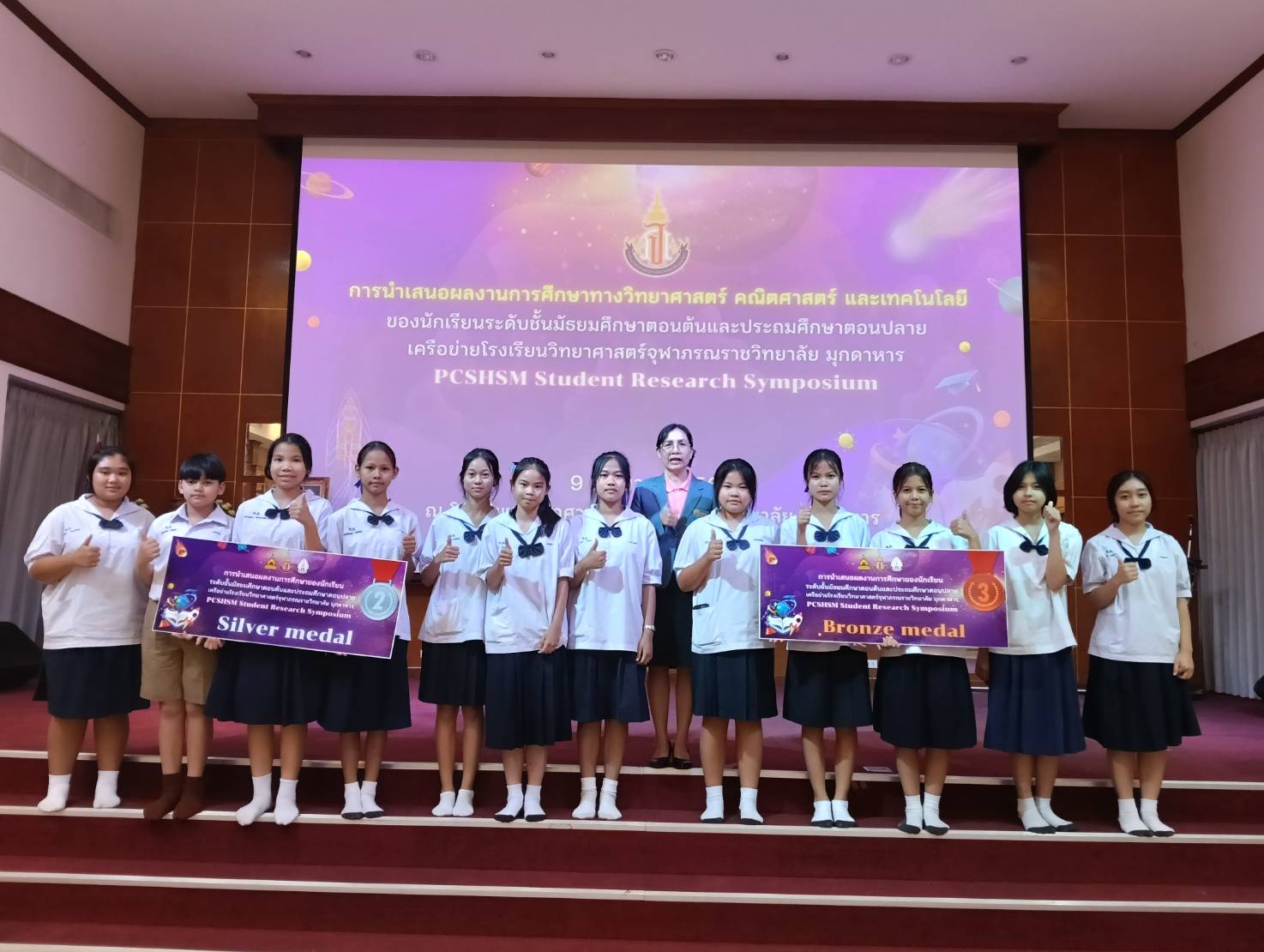 รางวัลเหรียญเงินและเหรียญทองแดง การนำเสนอผลงานการศึกษาวิทยาศาสตร์ คณิตศาสตร์ และเทคโนโลยี ของนักเรียนระดับชั้นมัธยมศึกษาตอนต้นและประถมศึกษาตอนปลาย เครือข่ายโรงเรียนวิทยาศาสตร์จุฬาภรณราชวิทยาลัย มุกดาหาร