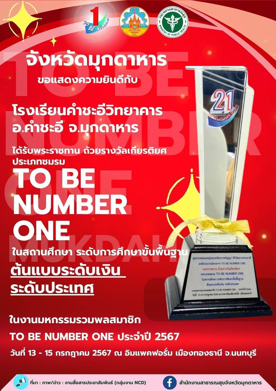 โรงเรียนคำชะอีวิทยาคาร ร่วมนำเสนอผลงาน To be Number one ในงานมหกรรมรวมพลสมาชิก To be Number one ระหว่างวันที่ 13-15 กรกฎาคม 2567 ณ อิมแพ็คเมืองทองธานี ประเภทสถานศึกษาต้นแบบระดับเงิน พร้อมเป็นต้นแบบระดับทองปี ี่ 1