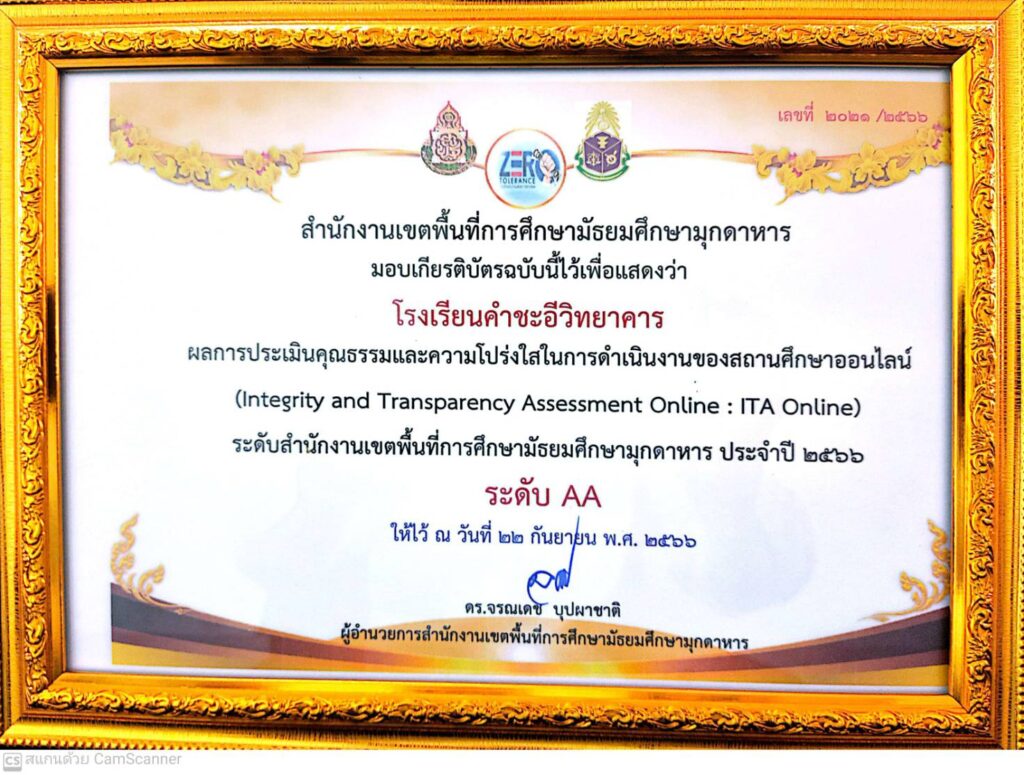 ข่าวประชาสัมพันธ์/ประกาศ โรงเรียนคำชะอีวิทยาคาร มีผลการประเมินคุณธรรมและความโปร่งใสในการดำเนินงานของสถานศึกษา ITA ประจำปี ๒๕๖๖ ระดับ ยอดเยี่ยม AA October 21, 2023 admin 0 Comments ยอดผู้อ่าน 412
