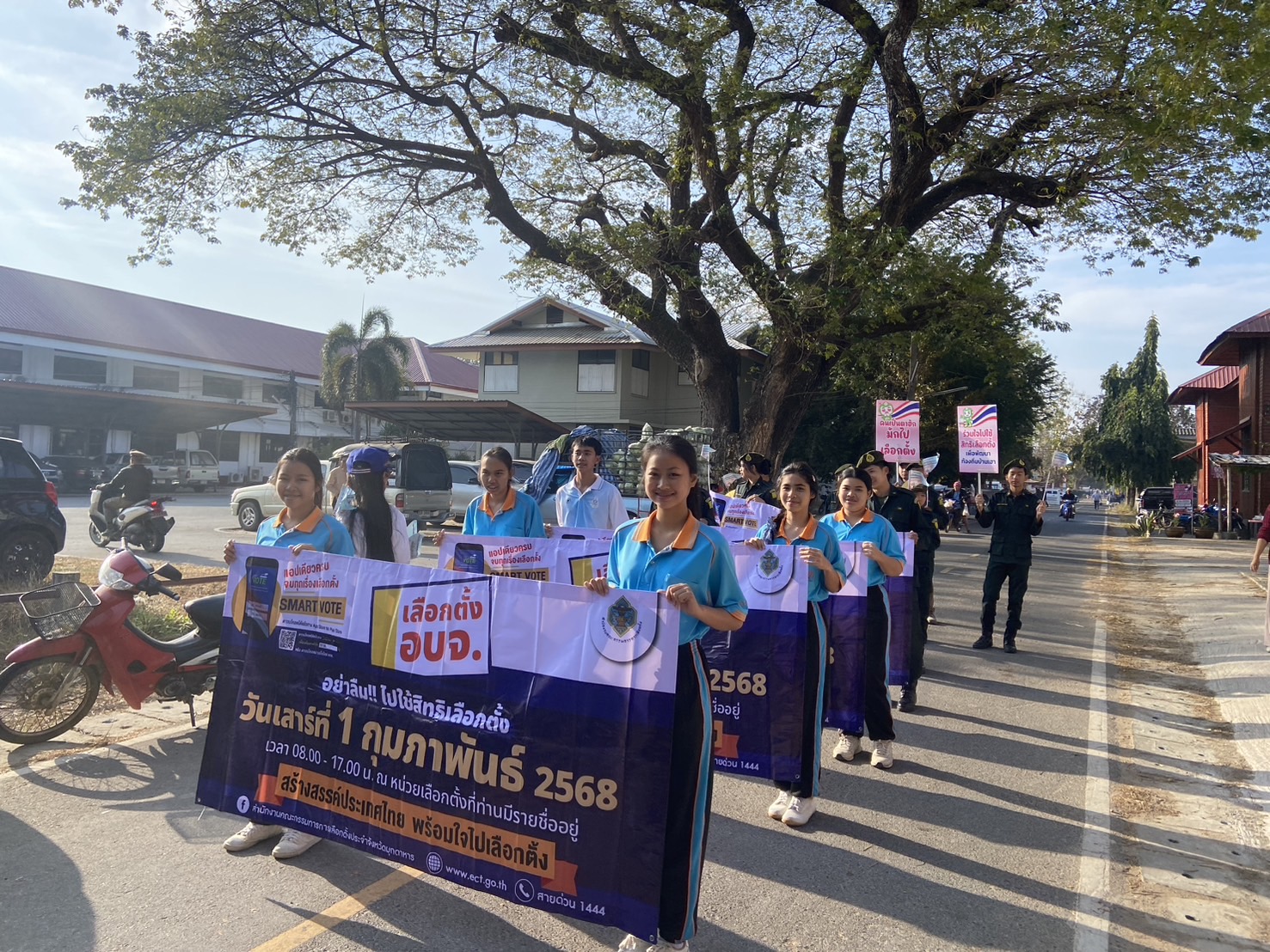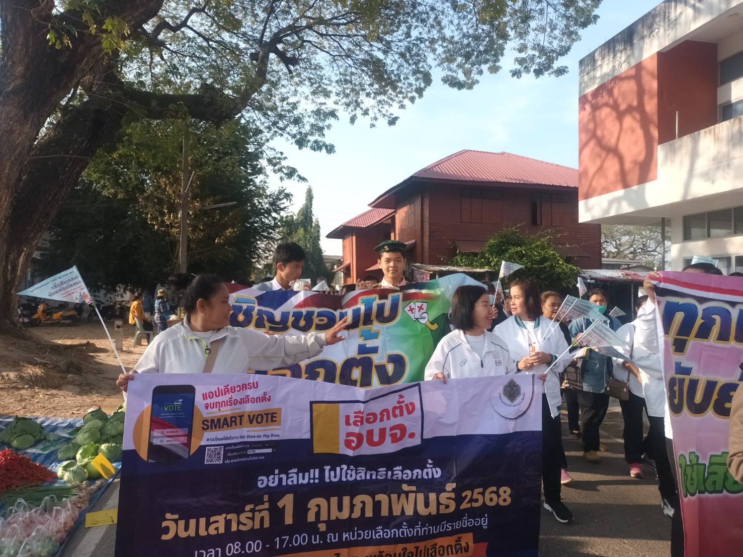 นายวิชิต บุรัตน์ รองผู้อำนวยการ พร้อมด้วยคณะครู และนักเรียนร่วมเดินรณรงค์การใช้สิทธิ์เลือกตั้งนายกและสมาชิกสภา