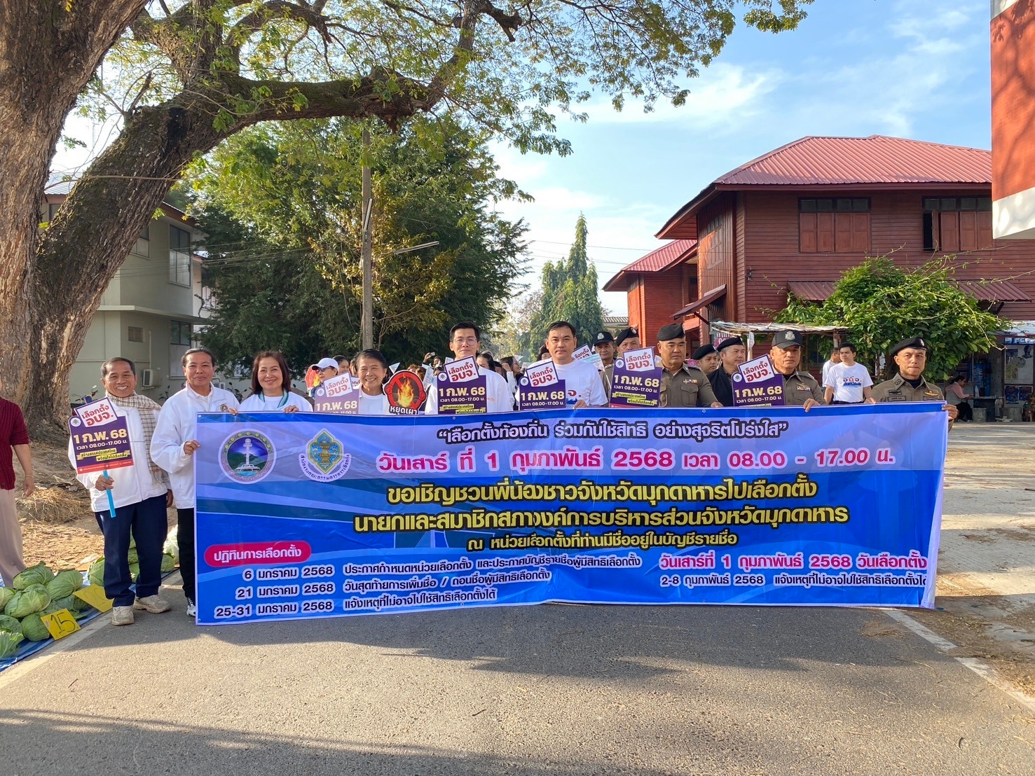 โรงเรียนคำชะอีวิทยาคาร นำโดย นายวิชิต บุรัตน์ รองผู้อำนวยการโรงเรียนคำชะอีวิทยาคาร พร้อมด้วยคณะครู และ นักเรียนร่วมเดินรณรงค์การใช้สิทธิ์เลือกตั้งนายกและสมาชิกสภาองค์การบริหารส่วนจังหวัดมุกดาหาร ในวันเสาร์ที่ ๑ กุมภาพันธ์ ๒๕๖๘