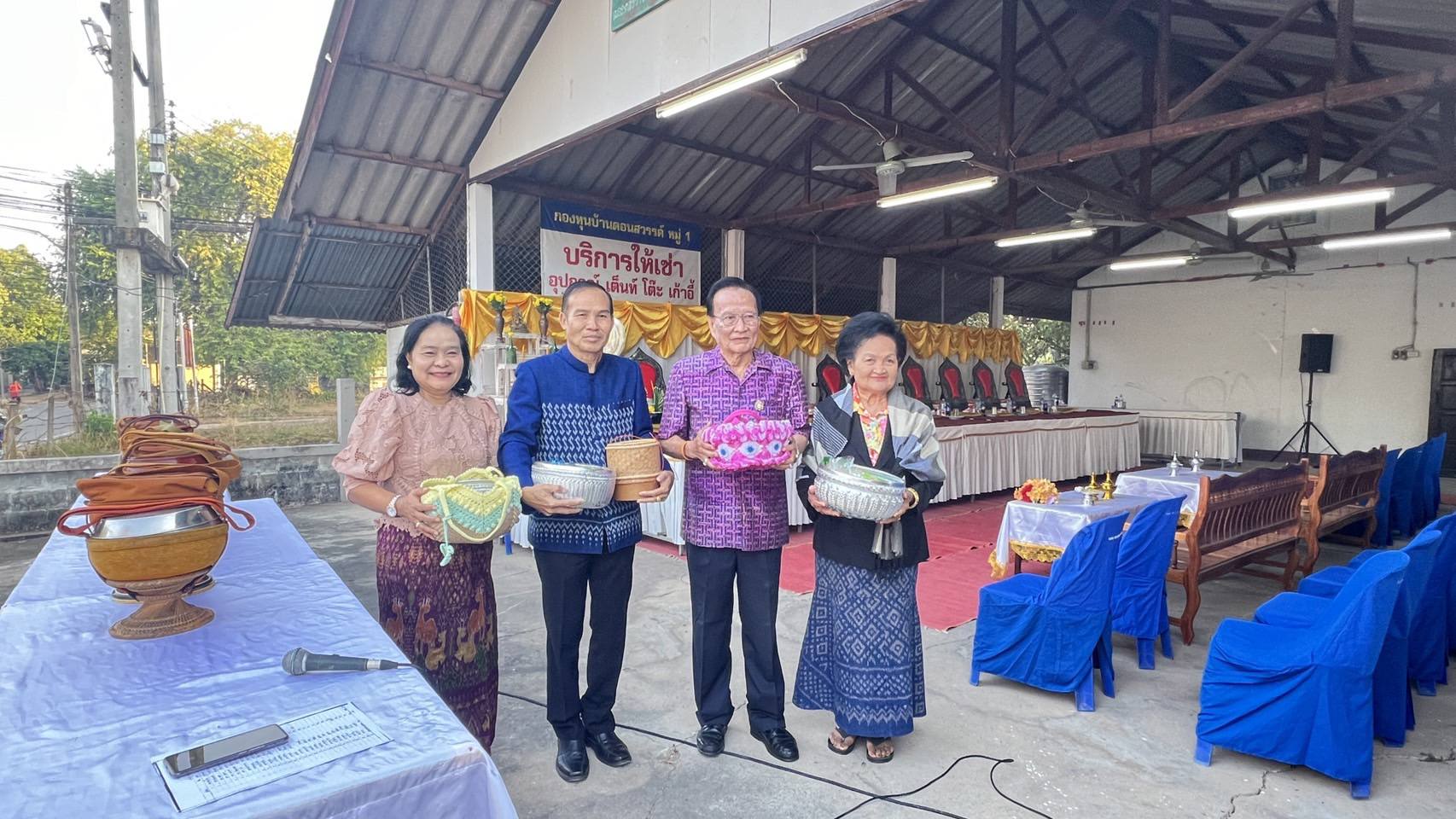 นายบุญชอบ อุสาย และคณะครู ร่วมทำบุญขึ้นปีใหม่ ณ บ้านดอนสวรรค์