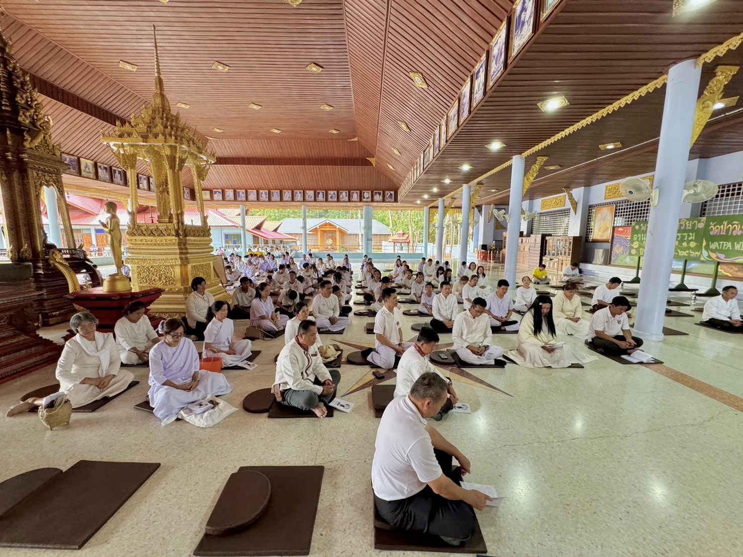นายบุญชอบ อุสาย ผู้อำนวยการโรงเรียนคำชะอีวิทยาคาร พร้อมด้วย นางอุลิยา ศรีบุรมย์ นายวิชิต บุรัตน์ รองผู้อำนวยการโรงเรียน และคณะครูโรงเรียนคำชะอีวิทยาคาร ร่วมปฎิบัติธรรมในกิจกรรมลานวัดลานธรรม ทุกวันพระ ซึ่งจัดขึ้นที่วัดป่าวิเวกวัฒนาราม (หลวงปู่จาม มหาปุญโญ) บ้านห้วยทราย ตำบลคำชะอี อำเภอคำชะอี จังหวัดมุดาการ ในวันจันทร์ ที่ ๒๕ เดือน พฤศจิกายน พ.ศ.๒๕๖๗