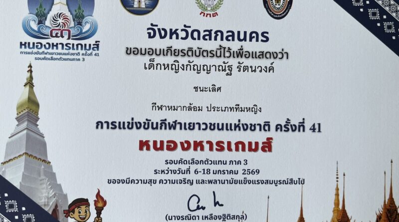 ทีมหญิงหมากล้อมคว้าเหรียญทอง กีฬาเยาวชนแห่งชาติ ครั้งที่ ๔๑ รอบคัดเลือกภาค ๓ เป็นตัวแทนเข้าแข่งขันระดับชาติ