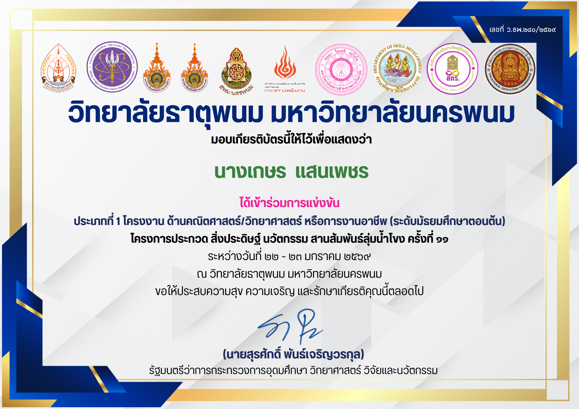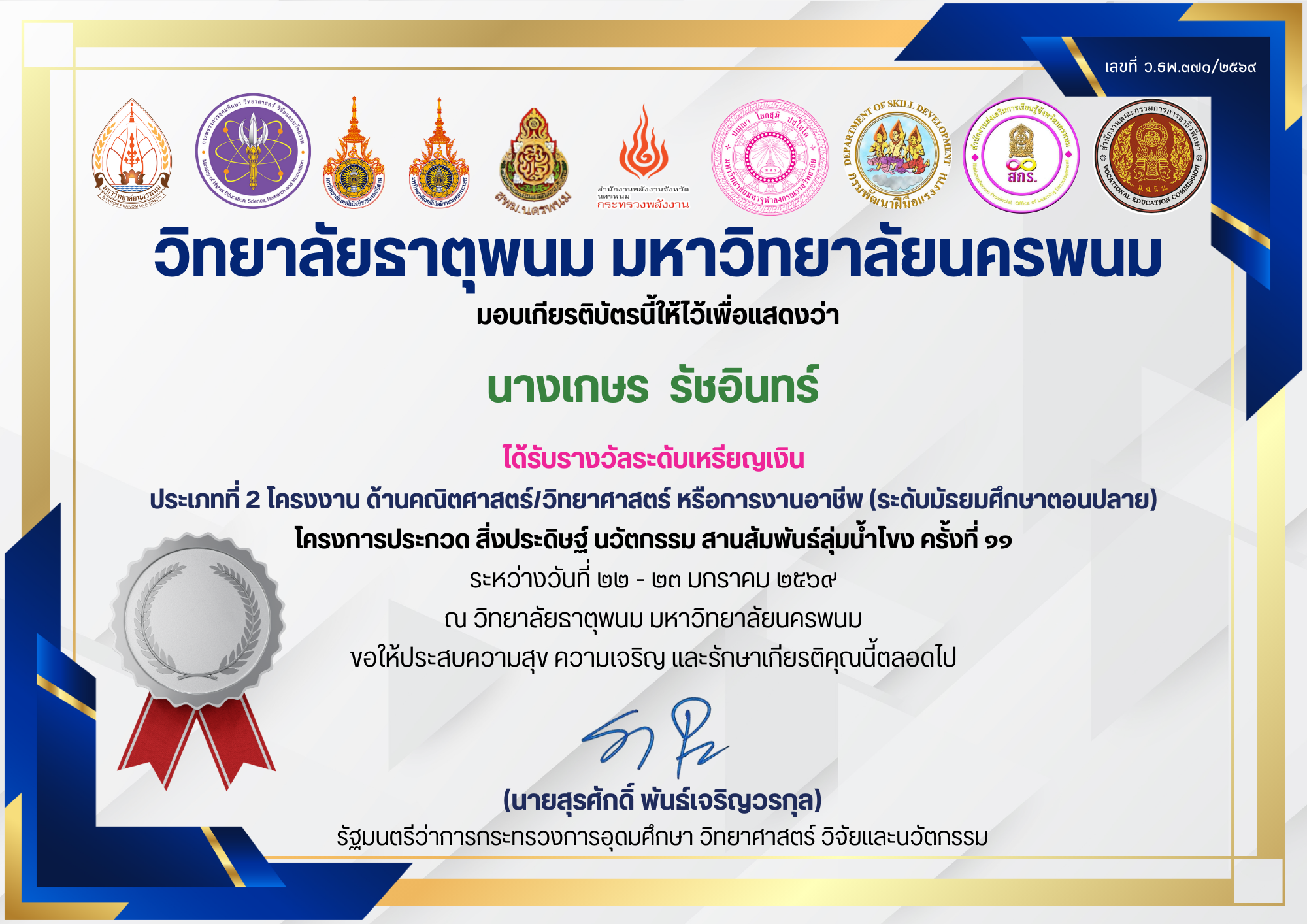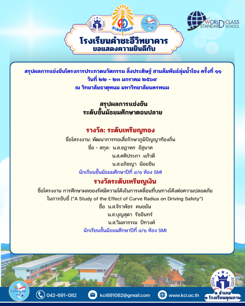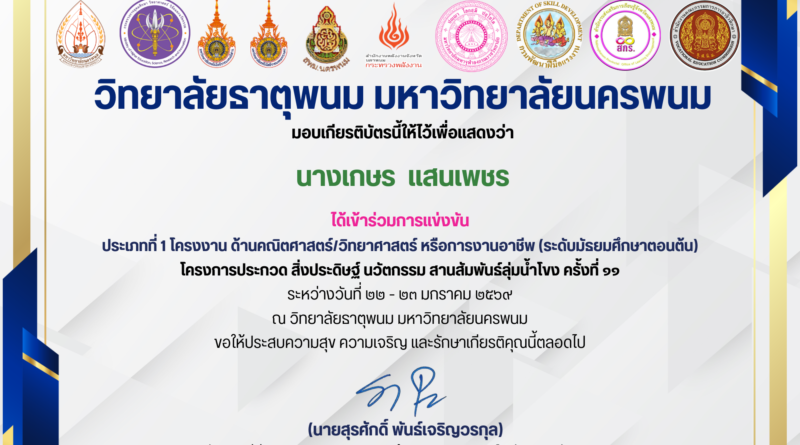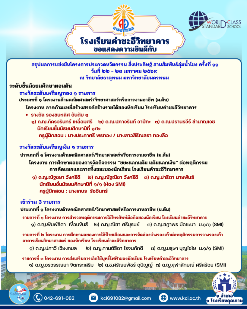 ห้องเรียนพิเศษวิทยาศาสตร์/ห้องเรียน PIM เผยแพร่ผลงานนักเรียน ผลการแข่งขันโครงการประกวดนวัตกรรม สิ่งประดิษฐ์ สานสัมพันธ์ลุ่มน้ำโขง ครั้งที่ ๑๑ February 16, 2026February 16, 2026 admin 0 Comments ยอดผู้อ่าน 6 กกกกกกก