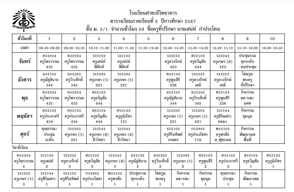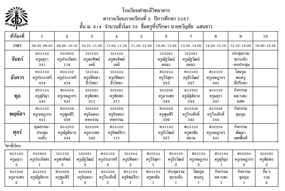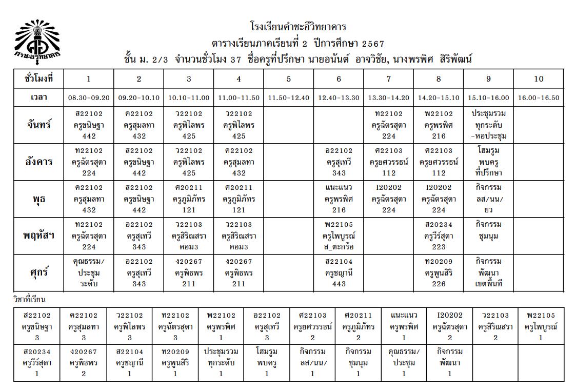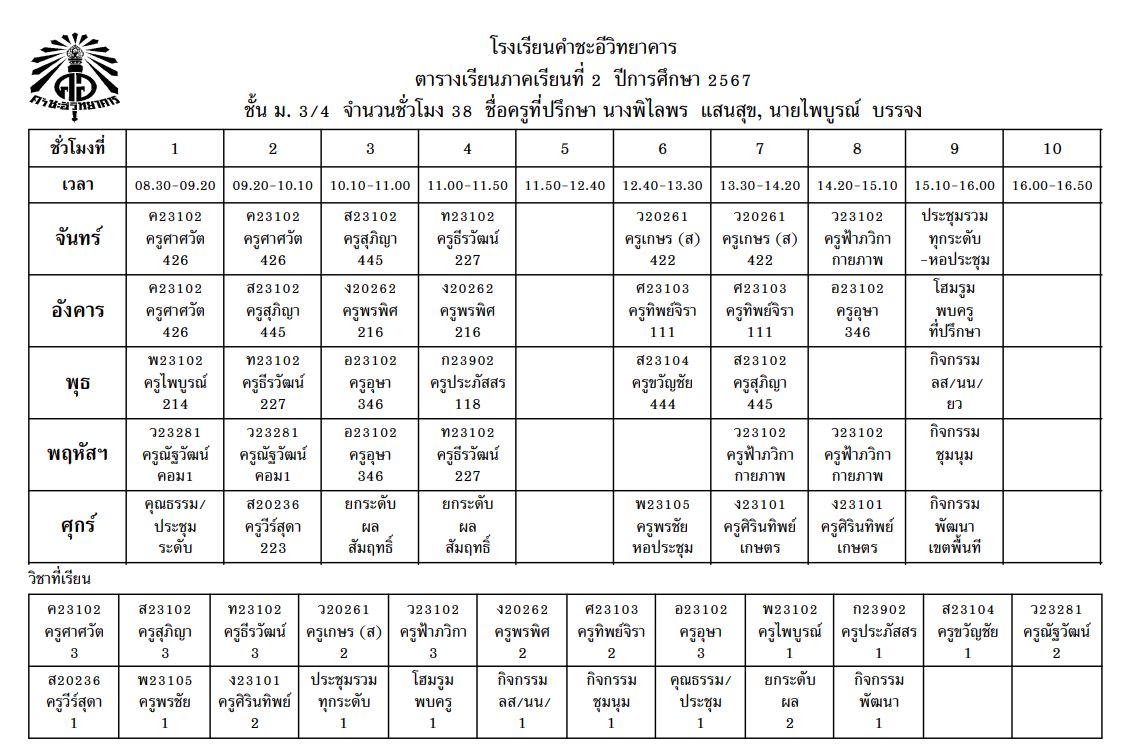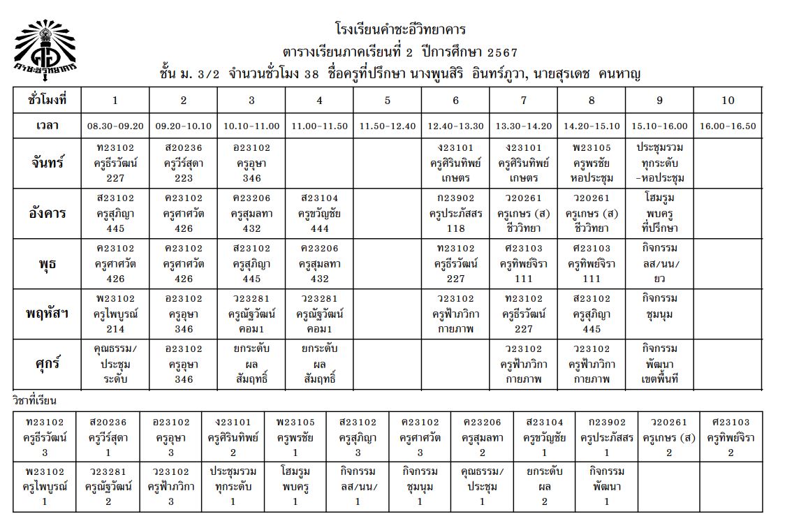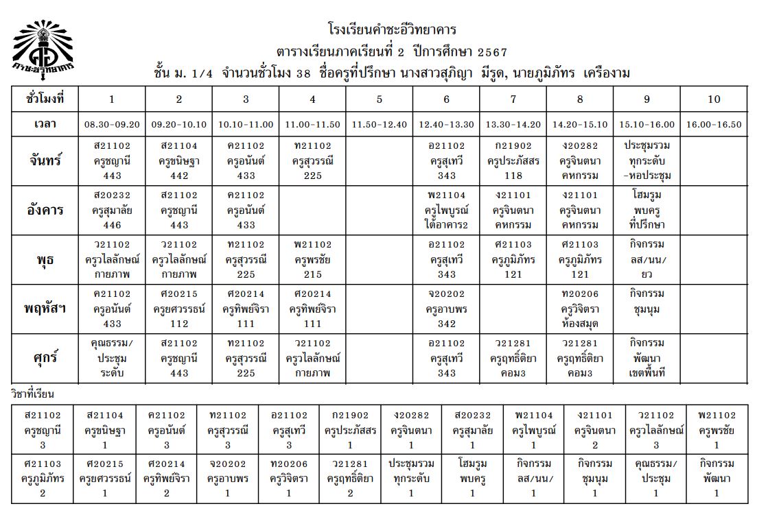 ตารางเรียนนักเรียน ภาคเรียนที่ 2/2567