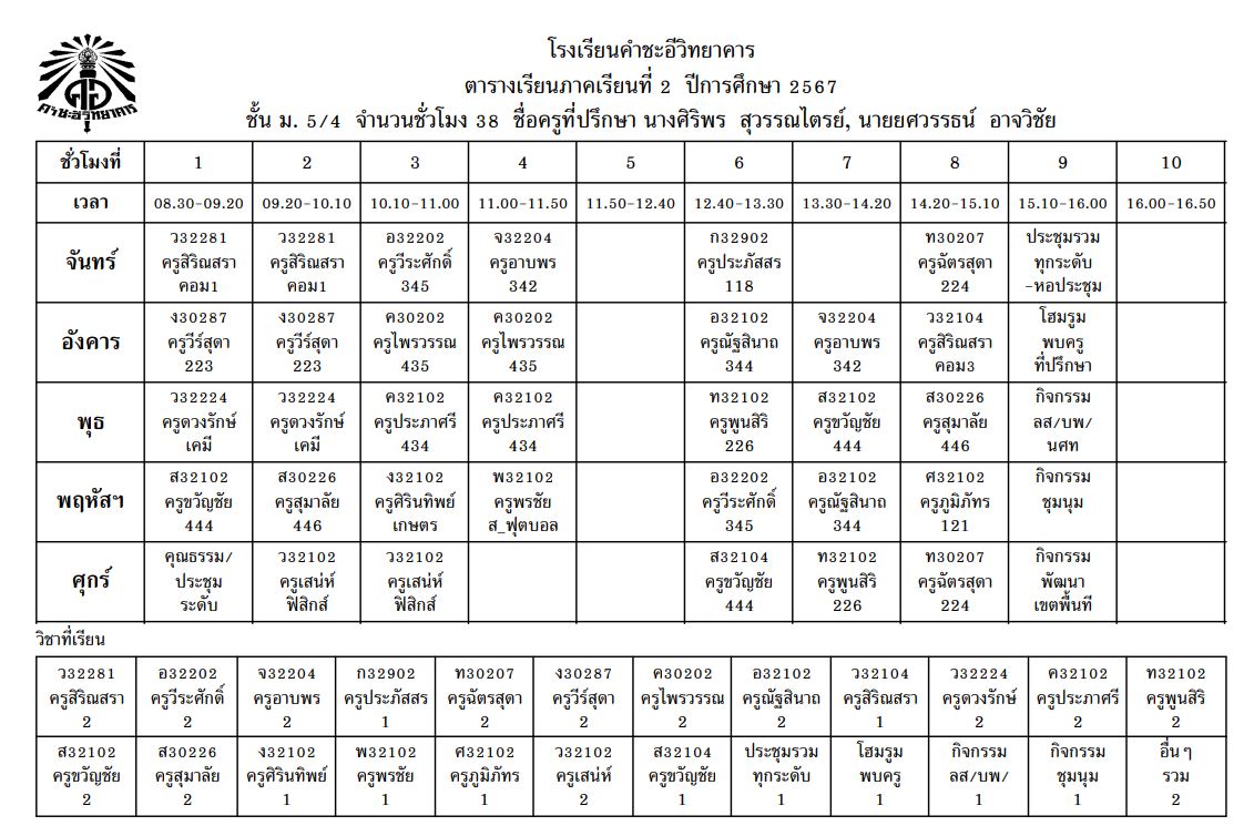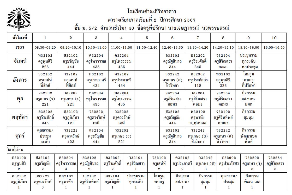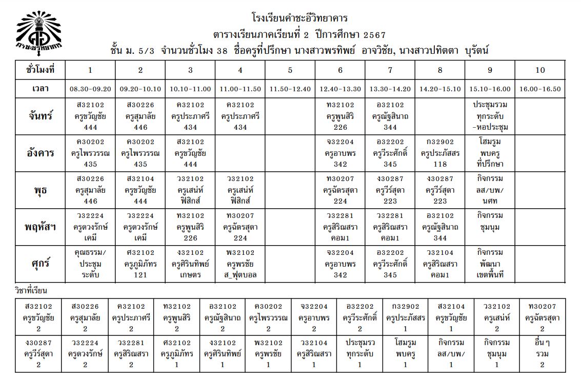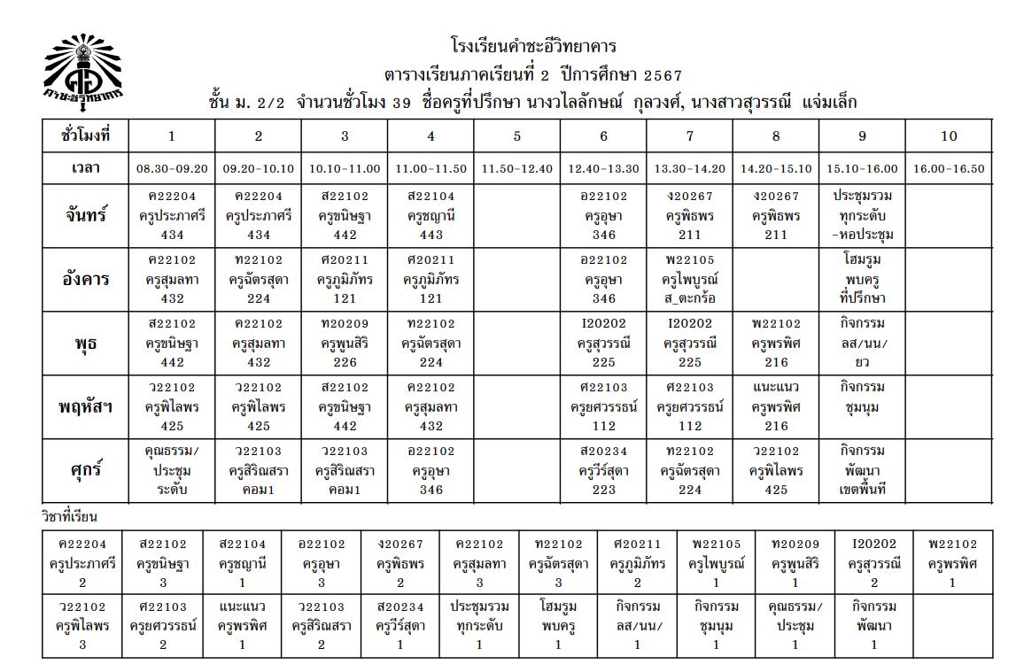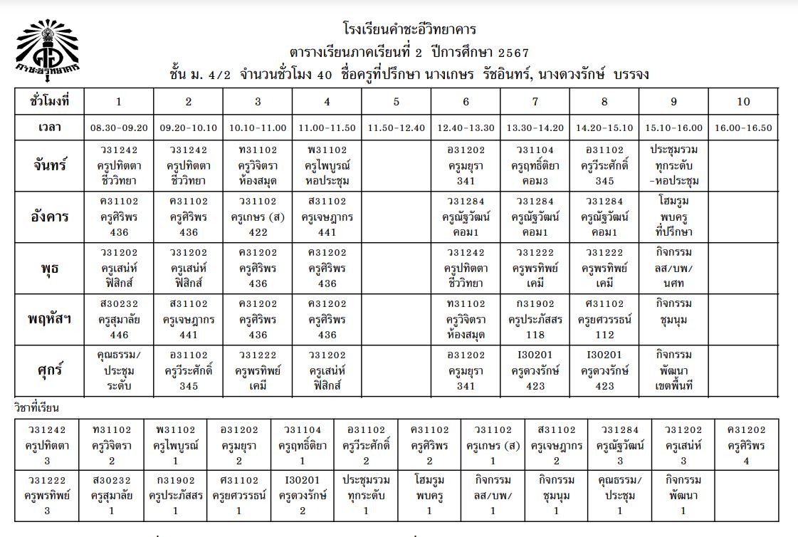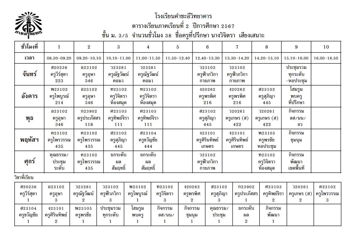 ตารางเรียนนักเรียน ภาคเรียนที่ 2/2567