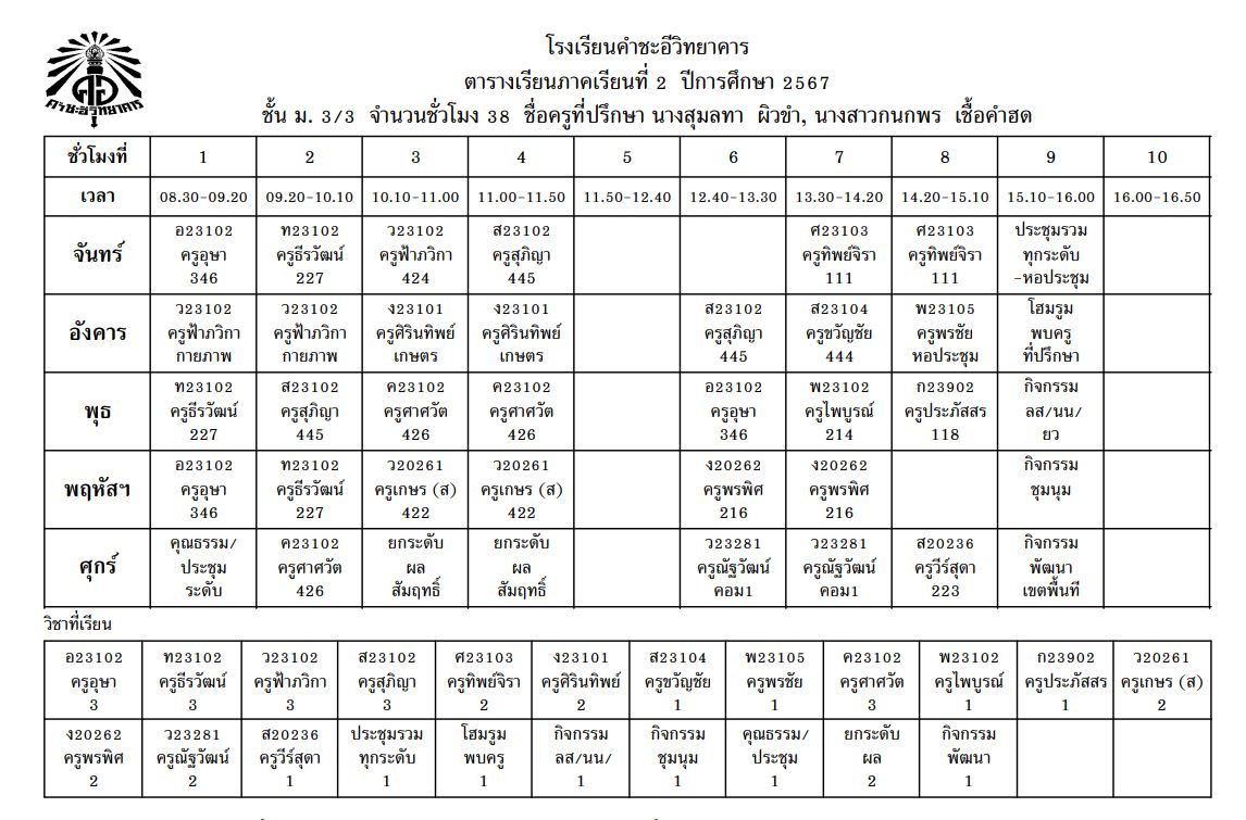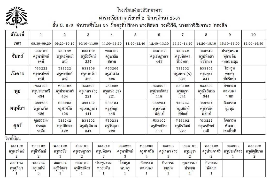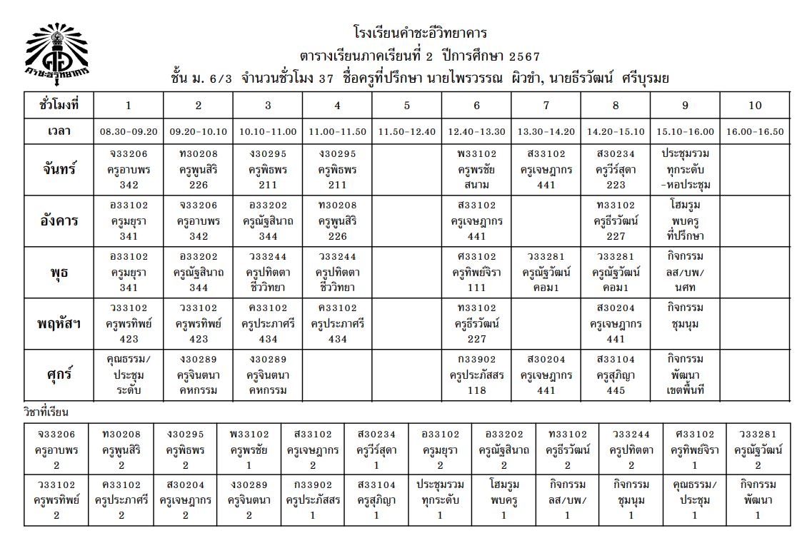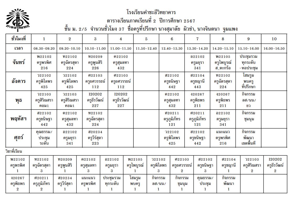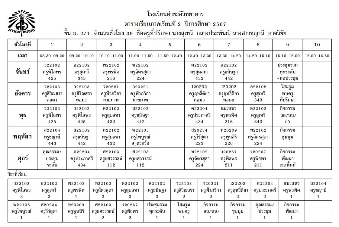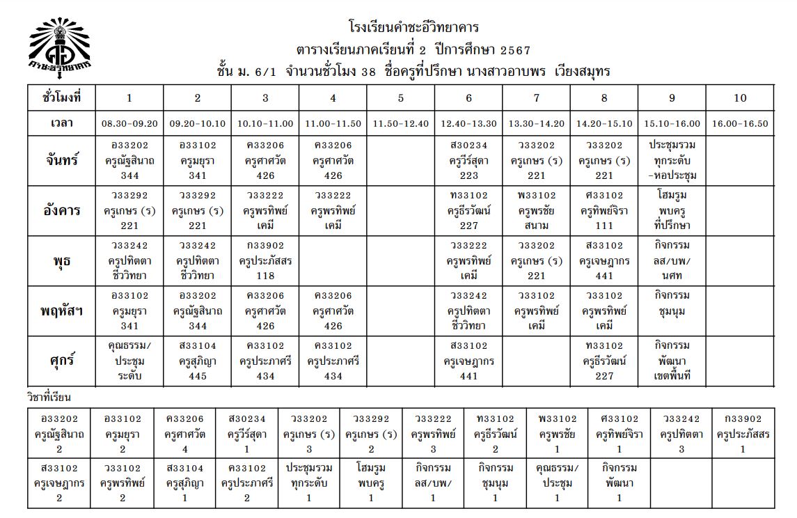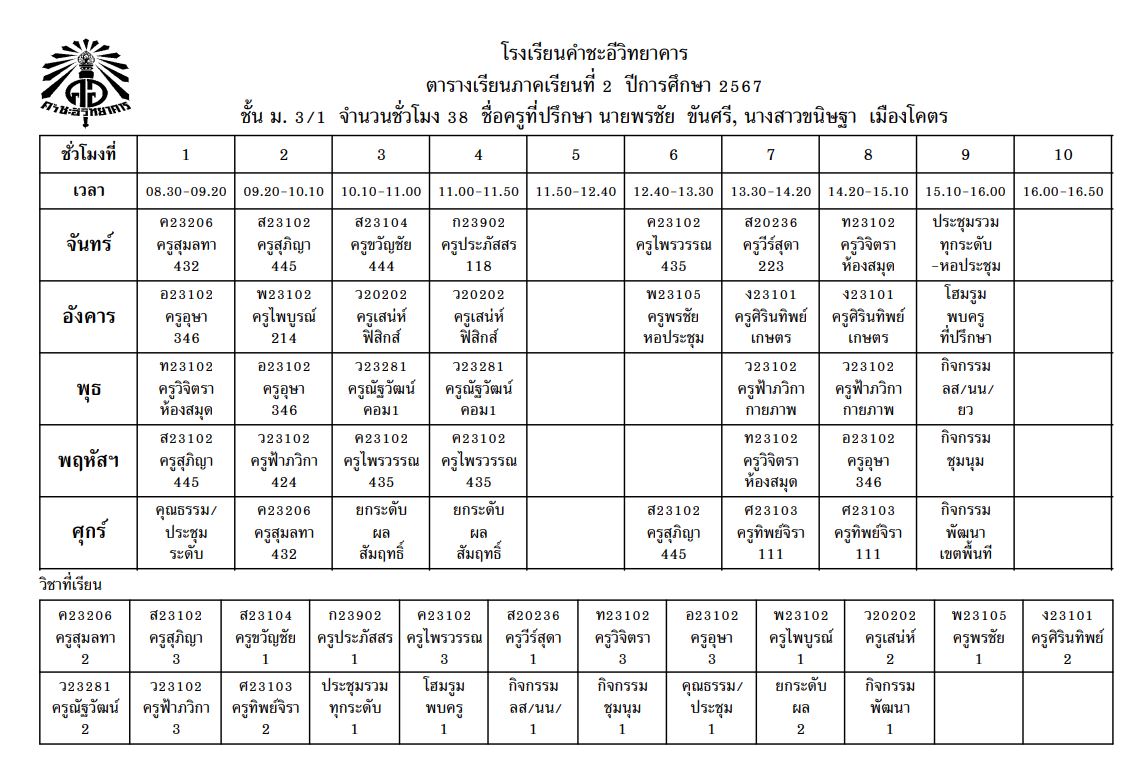 ตารางเรียนนักเรียน ภาคเรียนที่ 2/2567