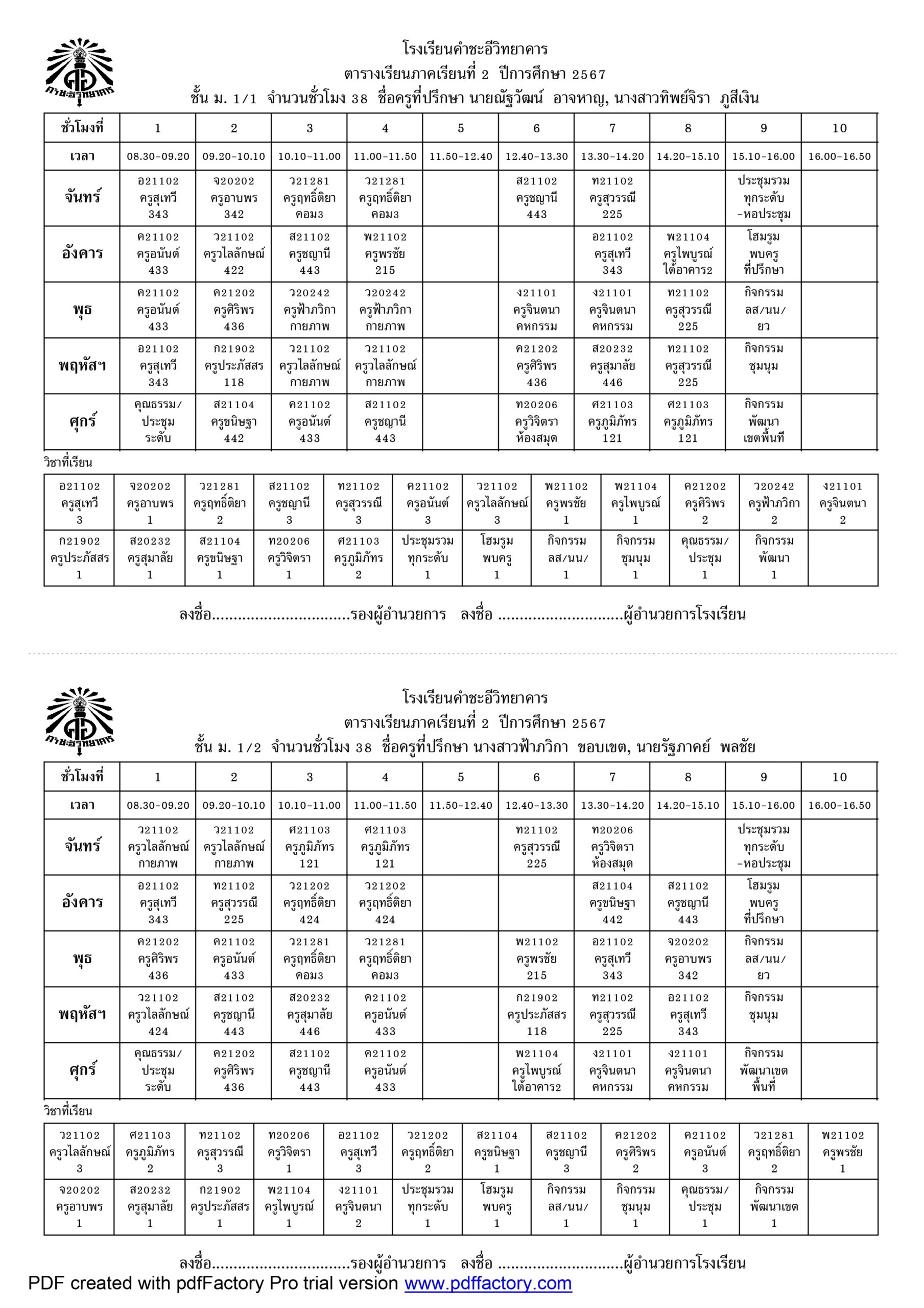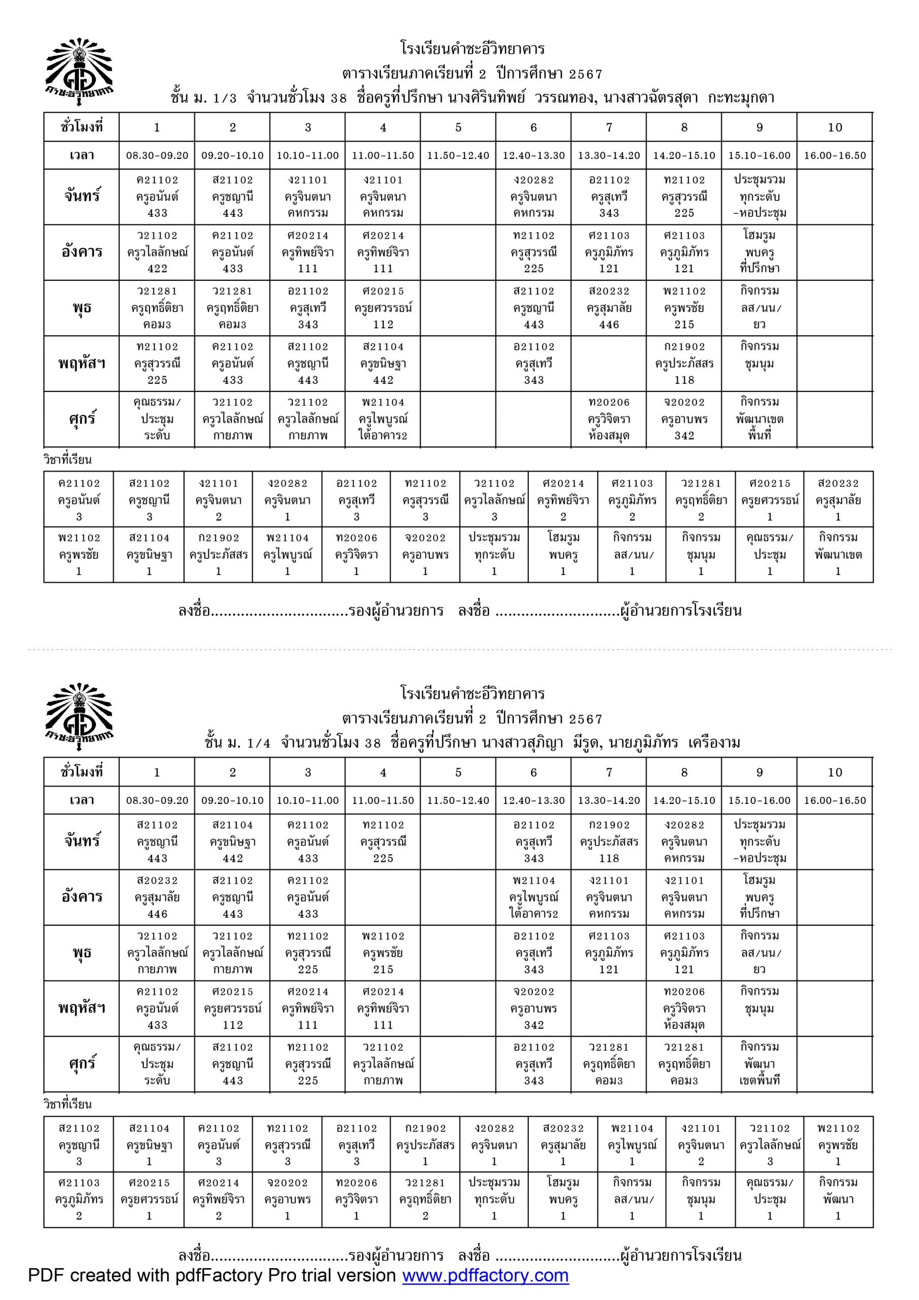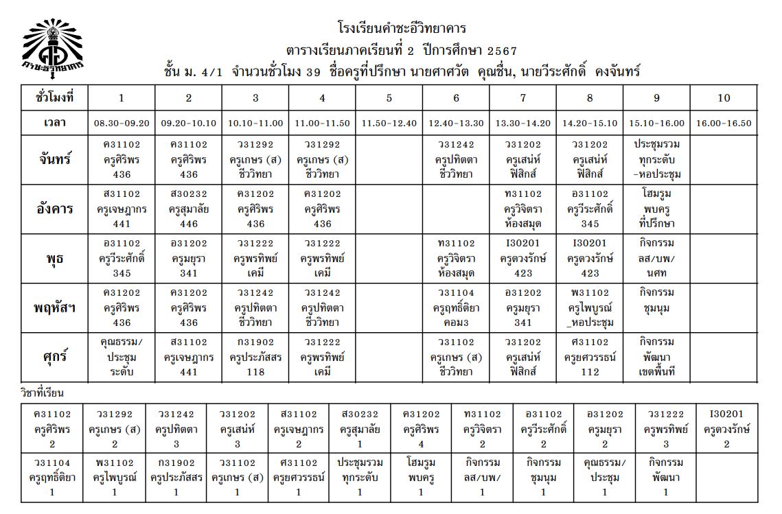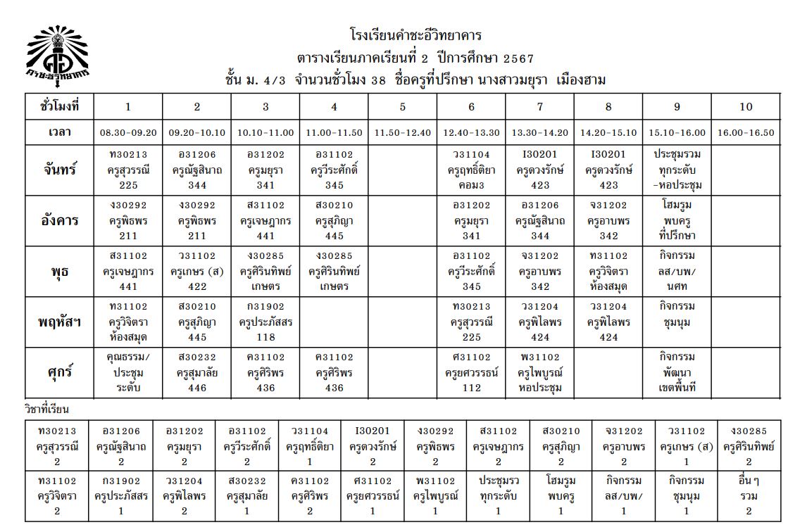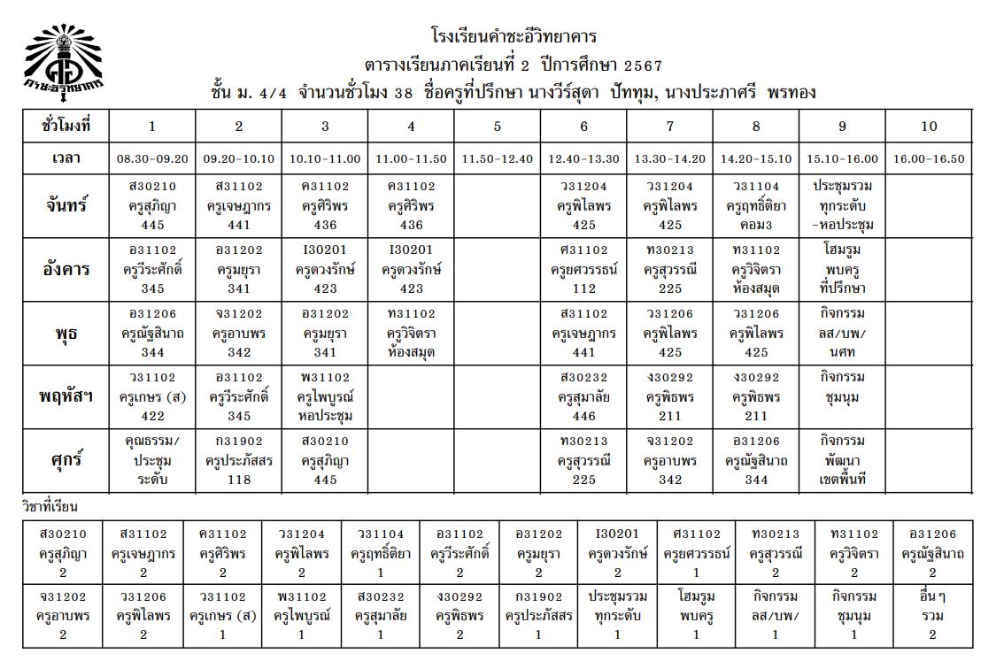 ตารางเรียนนักเรียน ภาคเรียนที่ 2/2567